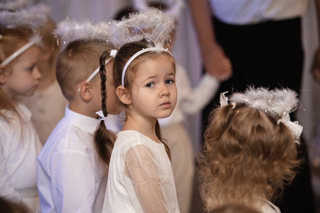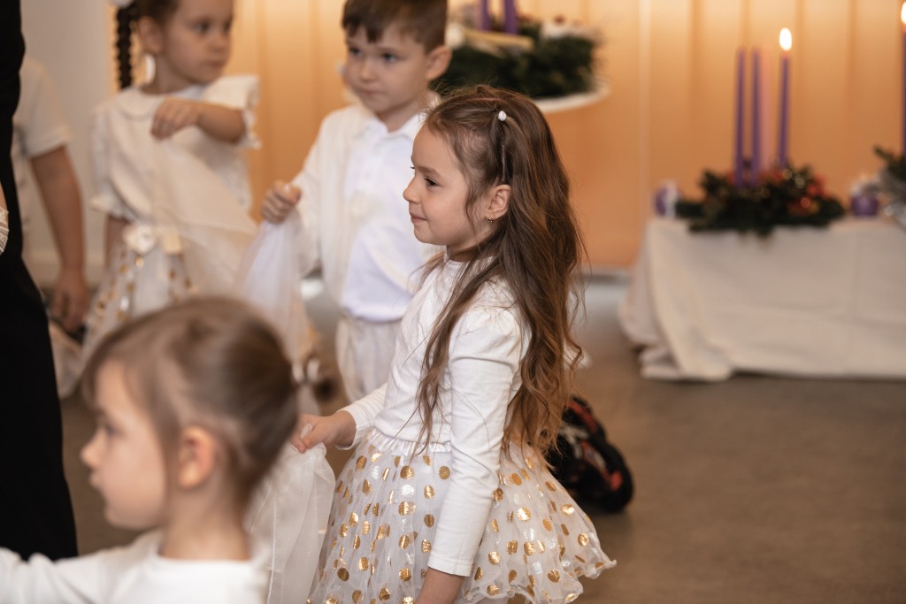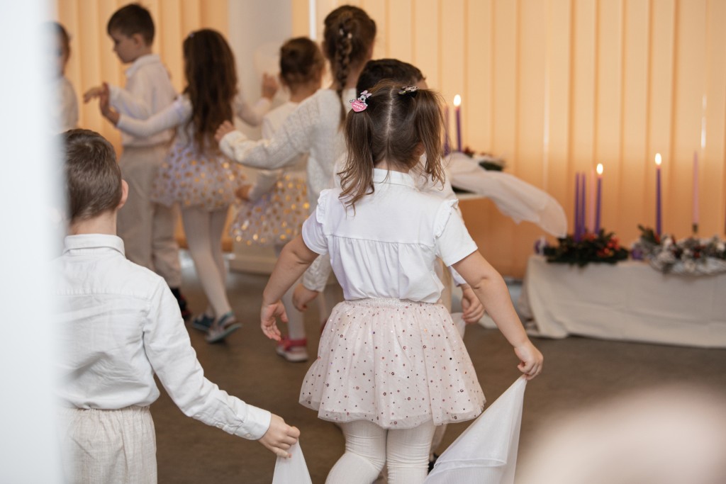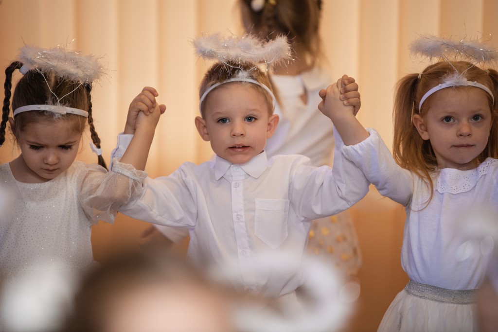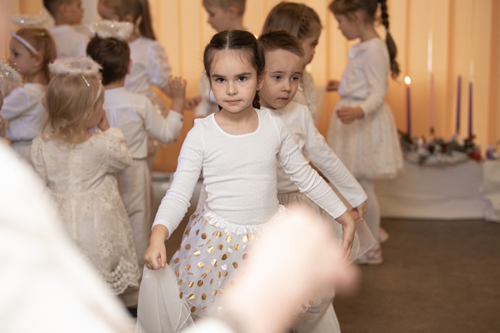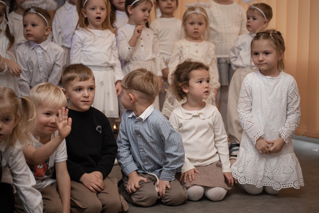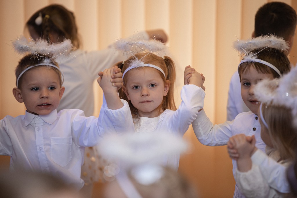 Renginio metu „Saulučių“ ir „Nykštukų“ grupių ugdytiniai kūrė jaukią nuotaiką, dainavo adventines daineles, šoko ratelį, o pabaigoje visi susirinkę dainavo dainą „Angelo sparnas“.