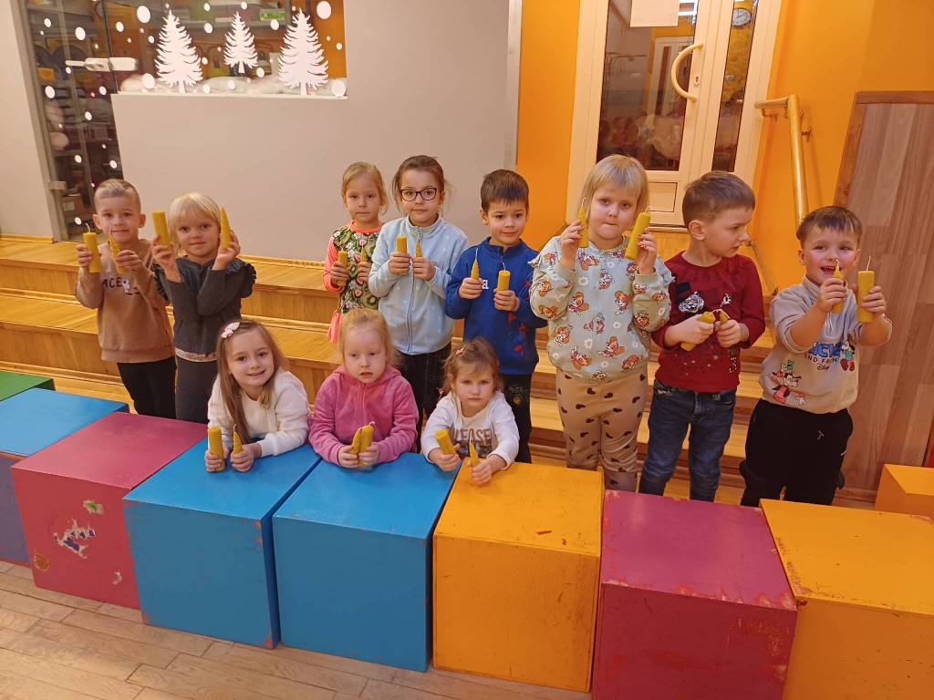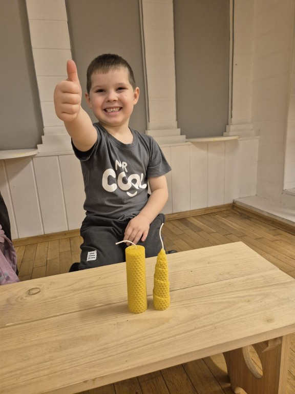 Popietė tapo šiltu ir jaukiu susibūrimu, pripildytu malonių aromatų, nes visą patalpą gaubė švelnus vaško kvapas, lydimas naujų potyrių. Vaikai sužinojo, kokie būdai buvo naudojami apšviesti namus, kaip žmonės gamindavo žvakes ir kodėl jos buvo tokios svarbios kasdienybėje. Visi ugdytiniai galėjo patys išbandyti žvakių sukimo meną. Kiekvienas dalyvis gavo vaškuolę, ją šildė delnais, atsargiai vyniojo, glostė ir formavo. Muziejininkė kantriai aiškino, kaip taisyklingai prispausti dagtį, kaip sukti, kad žvakė būtų tvirta, ir kaip ją saugiai naudoti. Vaikai džiaugėsi matydami, kaip paprastas vaškuolės lapas jų rankose tampa tikra žvake, mažu, šiltu šviesos šaltiniu.