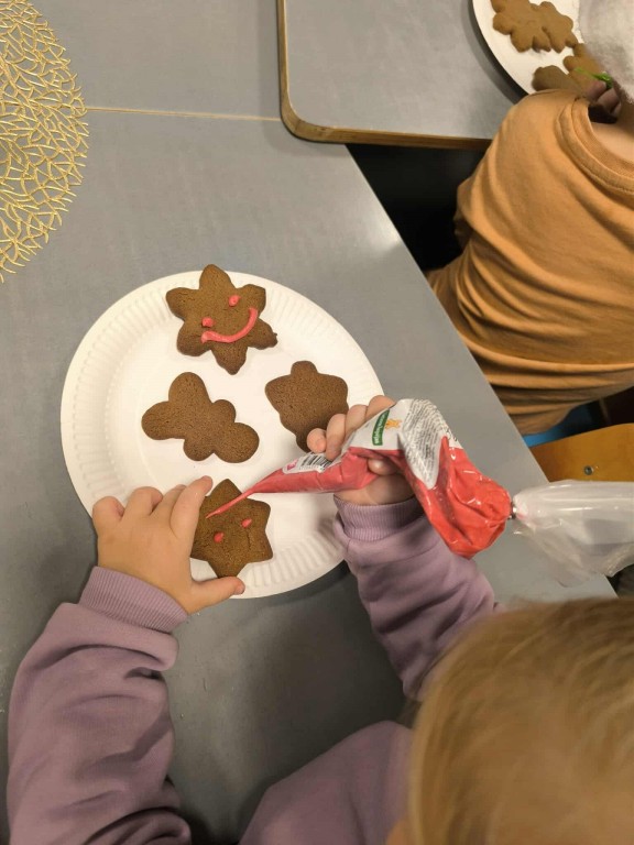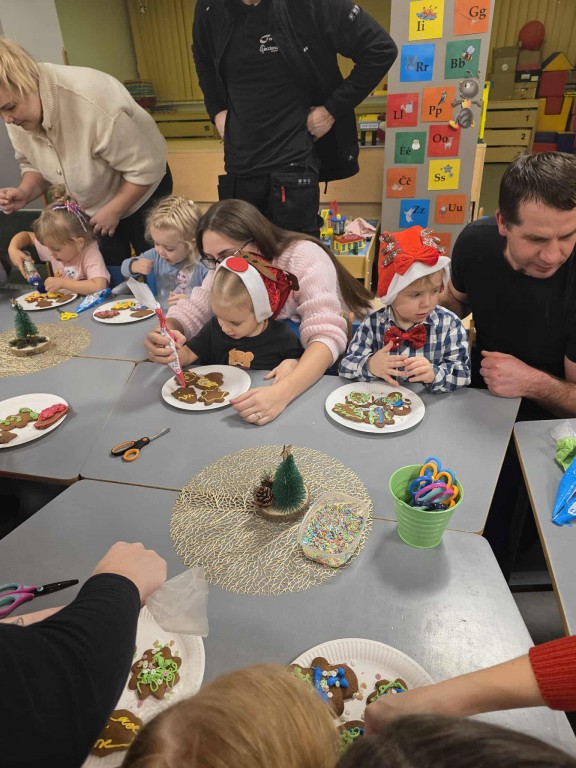Šventinis laikotarpis – tai metas, kai visi norisi daugiau jaukumo, bendrystės ir kūrybos. Būtent tokia nuotaika tvyrojo „Skruzdėliukų“ grupės vaikučių ir jų tėvelių kalėdinių sausainių dekoravimo dirbtuvėlėse. Grupė kvepėjo meduoliais, o ant stalų laukė paruošti įvairiausi glajai, spalvoti pabarstukai, o puodeliuose garavo kvapni arbata.