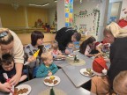 Dirbtuvėlių metu mažieji „Skruzdėliukų“ grupės vaikučiai, kartu su tėveliais kūrė tikrus kalėdinius meno kūrinius – dekoravo sausainius. Vaikai noriai eksperimentavo spalvomis bei ornamentais, o tėvai kantriai padėjo išgauti norimas linijas ir raštus. Kūrybinis procesas virto smagiu bendravimu, šypsenomis ir šventiniu jauduliu.