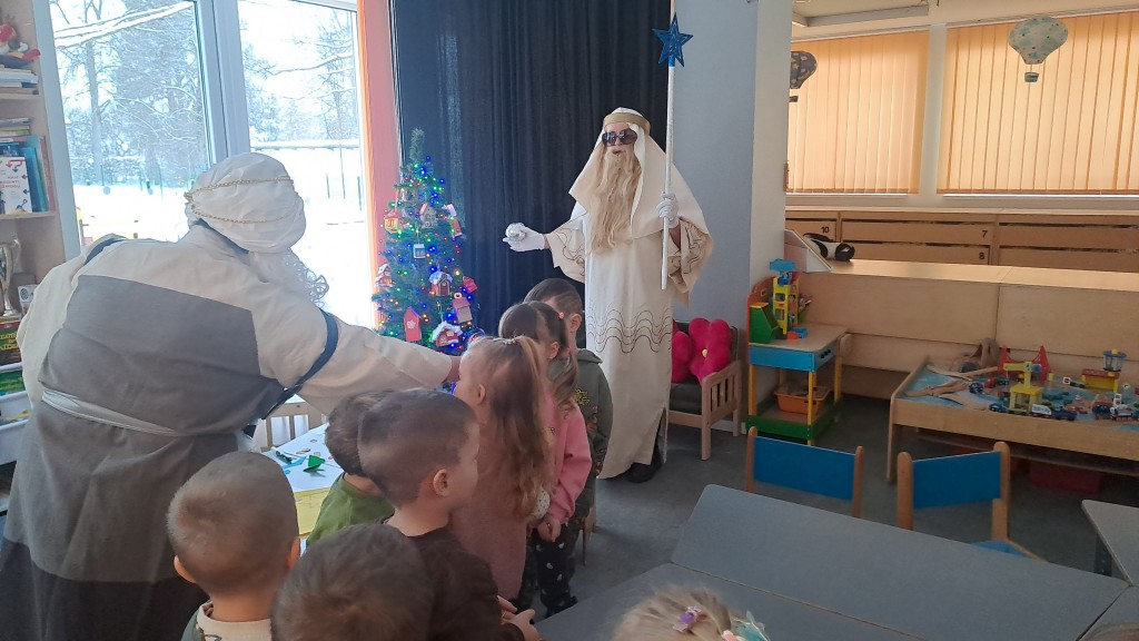 Trijų Karalių apsilankymas vaikų grupėse vyko jaukiai ir žaismingai, kurio metu vaikučiai prasmingai kartu su mokytojomis ir trimis karaliais užbaigė kalėdinį laikotarpį.