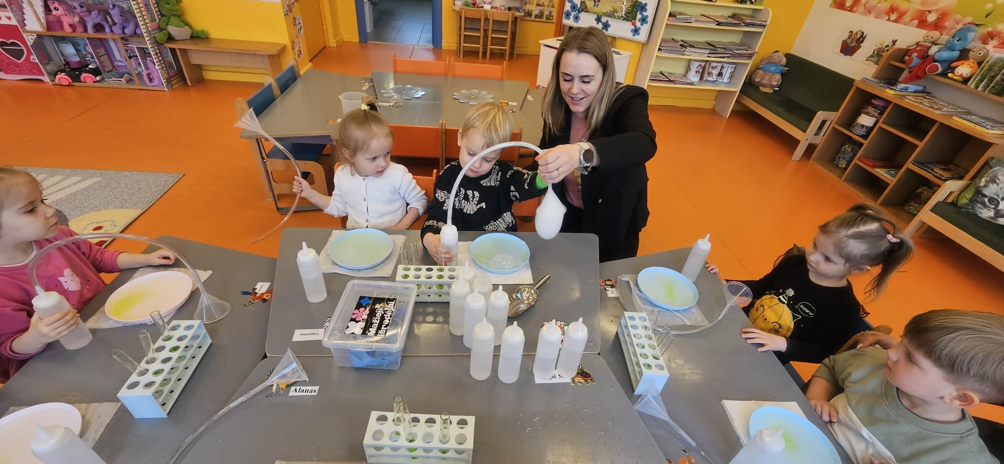 Kiekviena diena darželyje atneša naujų patirčių, tačiau kartais nutinka akimirkos, kurios ilgam išlieka vaikų atmintyje. Viena iš tokių buvo ypatingas rytmetis su ugdytinio Herkaus mama Rita „Kačiukų“ grupėje, kai smalsumas, džiaugsmas ir atradimai susijungė į vieną nepamirštamą patirtį. Smalsios vaikų akys, kupinos nuostabos ir atradimo džiaugsmo, tą rytą „Kačiukų“ grupėje spindėjo ypatingai ryškiai. Čia paprastas vanduo virto tikra stebuklų laboratorija, o kiekvienas eksperimentas – mažu atradimu, vedančiu į didelį pažinimo pasaulį. Tai buvo rytas, kai mokslas susitiko su magija, o smalsumas tapo svarbiausiu mokytoju.