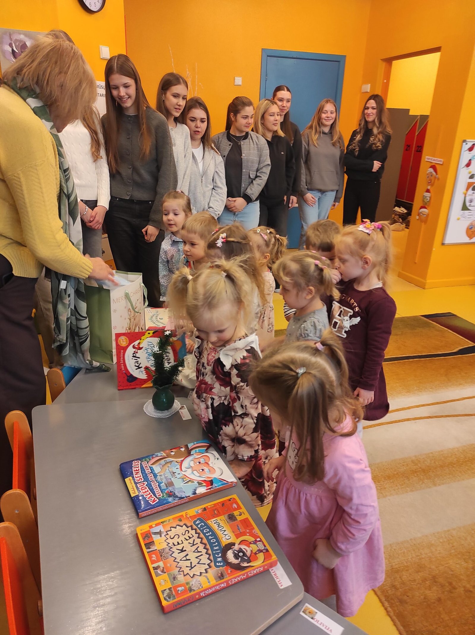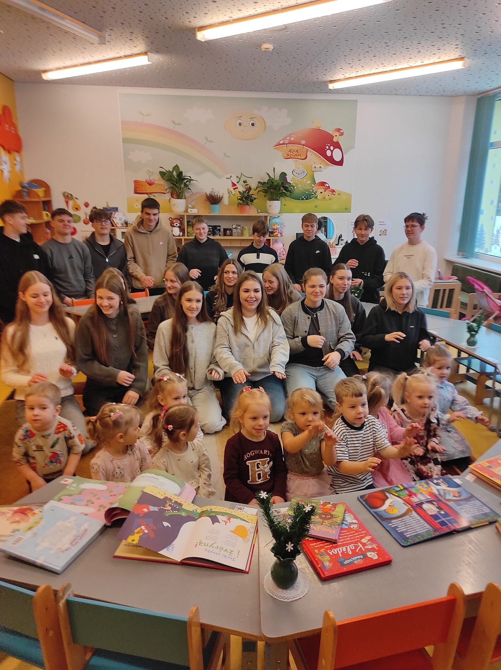 Gimnazistai „Nykštukų“ grupės vaikams padovanojo knygeles, kurias patys skaitė vaikystėje, ir pažadėjo kitą kartą atvykę jas garsiai paskaityti mažiesiems. Savo ruožtu „Nykštukų“ grupės ugdytiniai, padedami grupės mokytojos Silvos Bytautienės ir mokytojos padėjėjos Linos Gudauskienės, paruošė dovaną svečiams – grupės simbolį „Nykštuką“.
