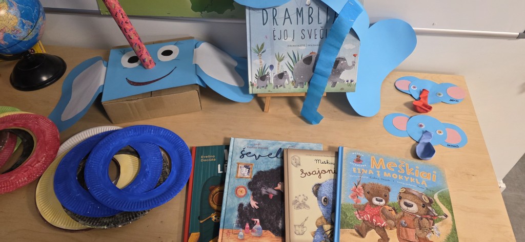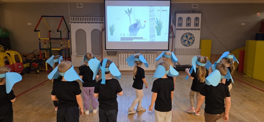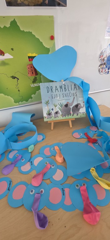 Grupėje ugdytiniai kartu su mokytoja skaitė E. Daciūtės knygą „Drambliai ėjo į svečius“. Pagal knygų siužetus, vaikai kūrė drambliukus ir net patys tapo „drambliukais“. Susipažinę su knygutės veikėjais, vaikai atliko įvairias užduotis: skaičiavo, mąstė ir diskutavo, kiek dramblių nuėjo į svečius.