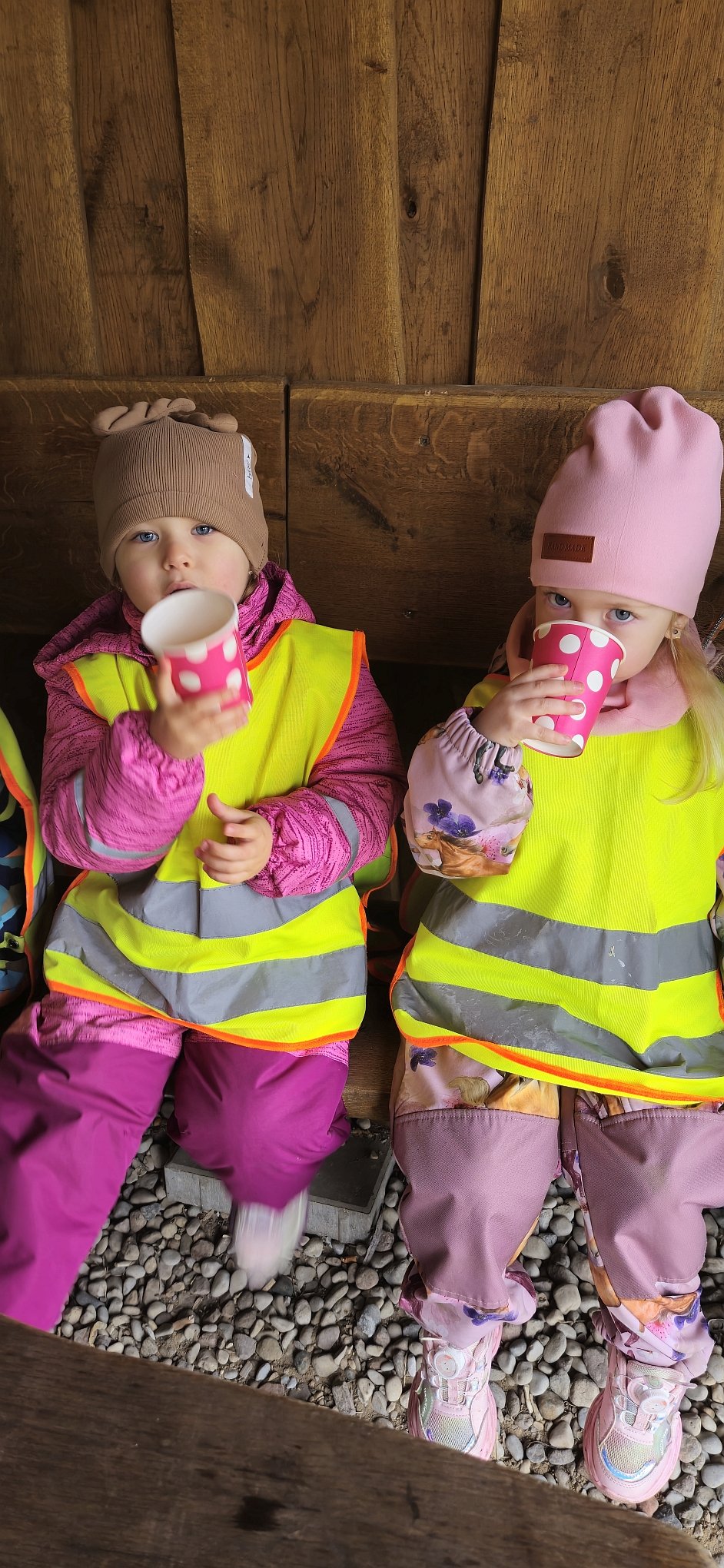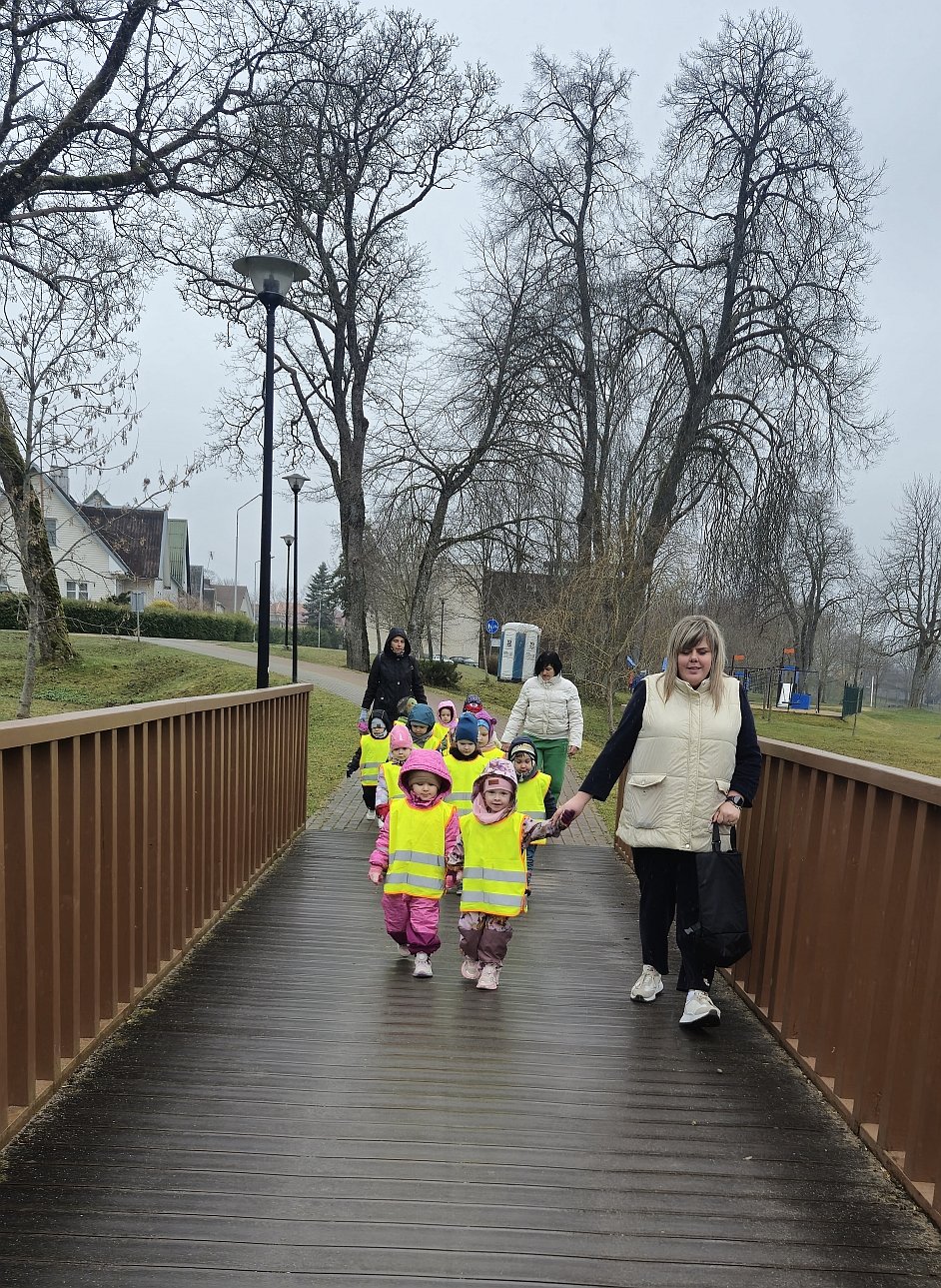 Didžiausias iššūkis – saugiai pereiti gatvę! Su pedagogų pagalba vaikai drąsiai praktikavo svarbiausią taisyklę: sustok – apsidairyk – įsiklausyk – eik tik tada, kai saugu. Ir, žinoma, kiekvienas sėkmingas perėjimas buvo lydimas džiaugsmo šūksnių ir plačių šypsenų. Po kupinų įspūdžių veiklų visi draugiškai sugužėjom prie Šilalės miesto tvenkinio esančios pavėsinės, kur laukė šilta arbata ir poilsis. Čia mažieji keliautojai dalijosi savo įspūdžiais, aptarė, ką naujo išmoko, ir dar kartą prisiminė svarbiausias saugaus elgesio taisykles.