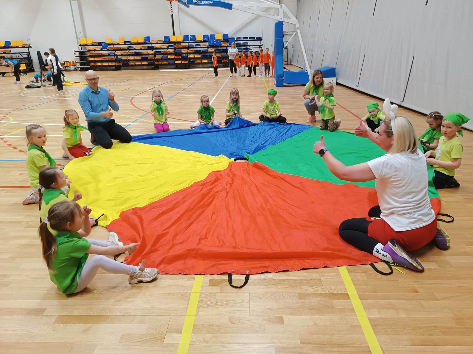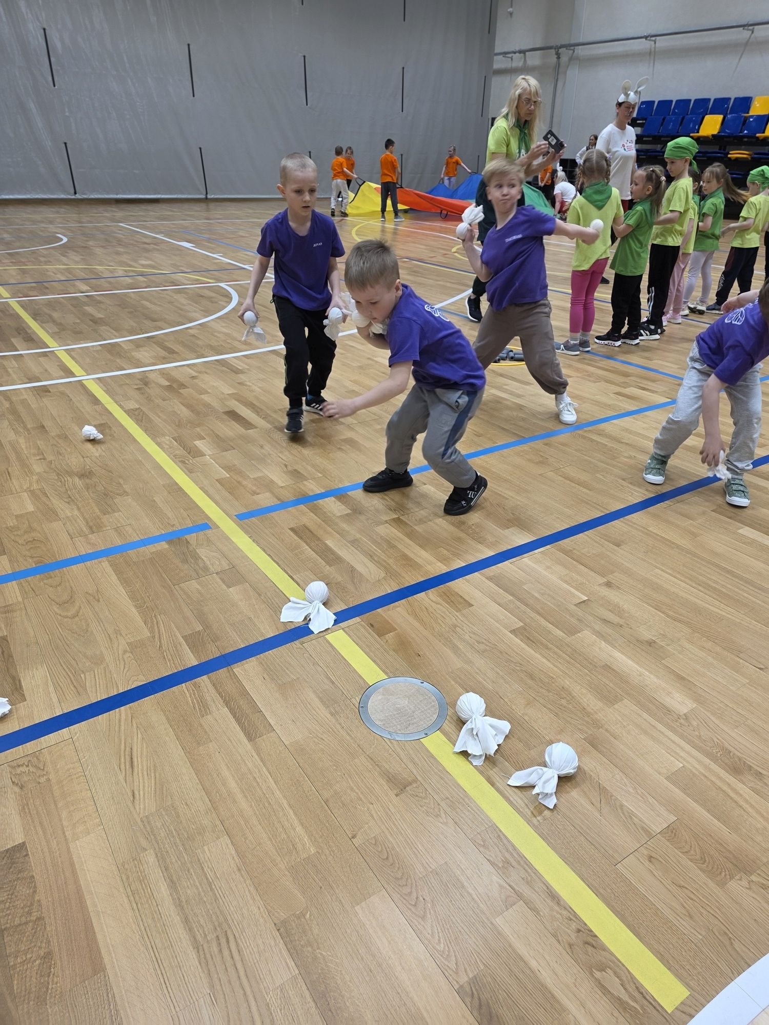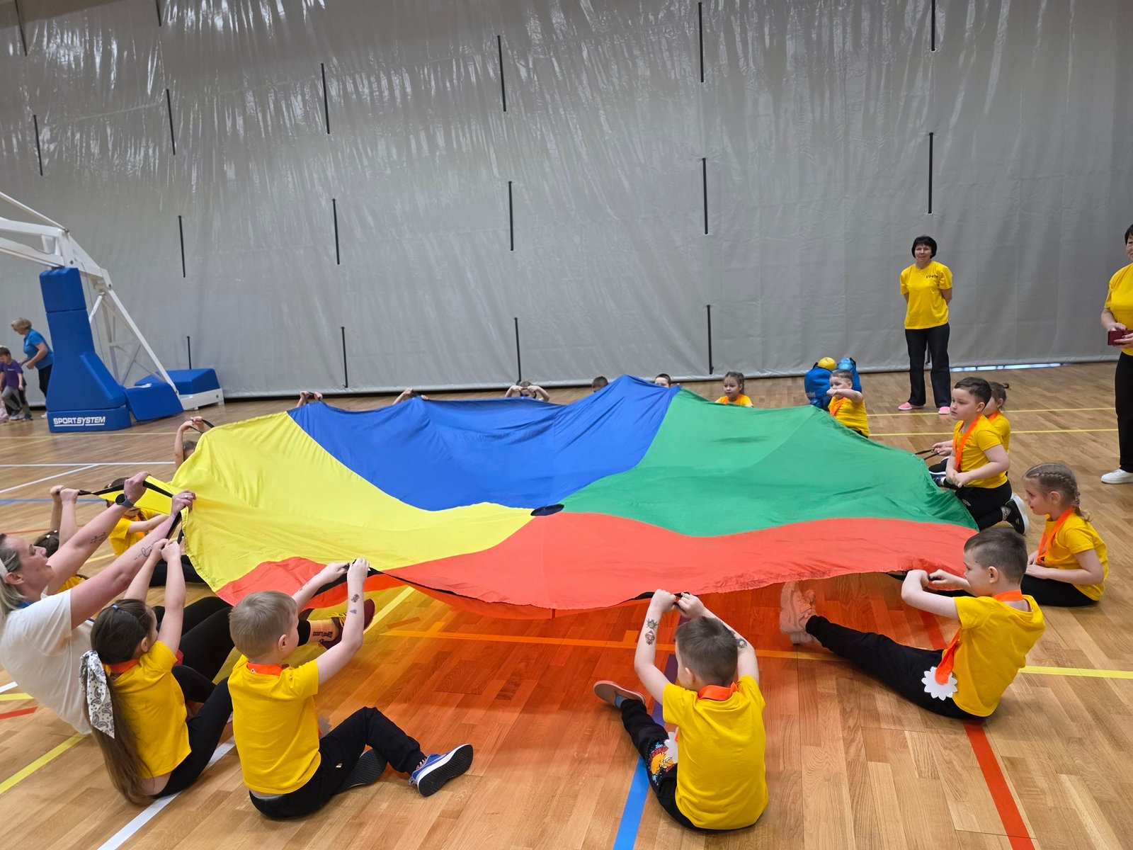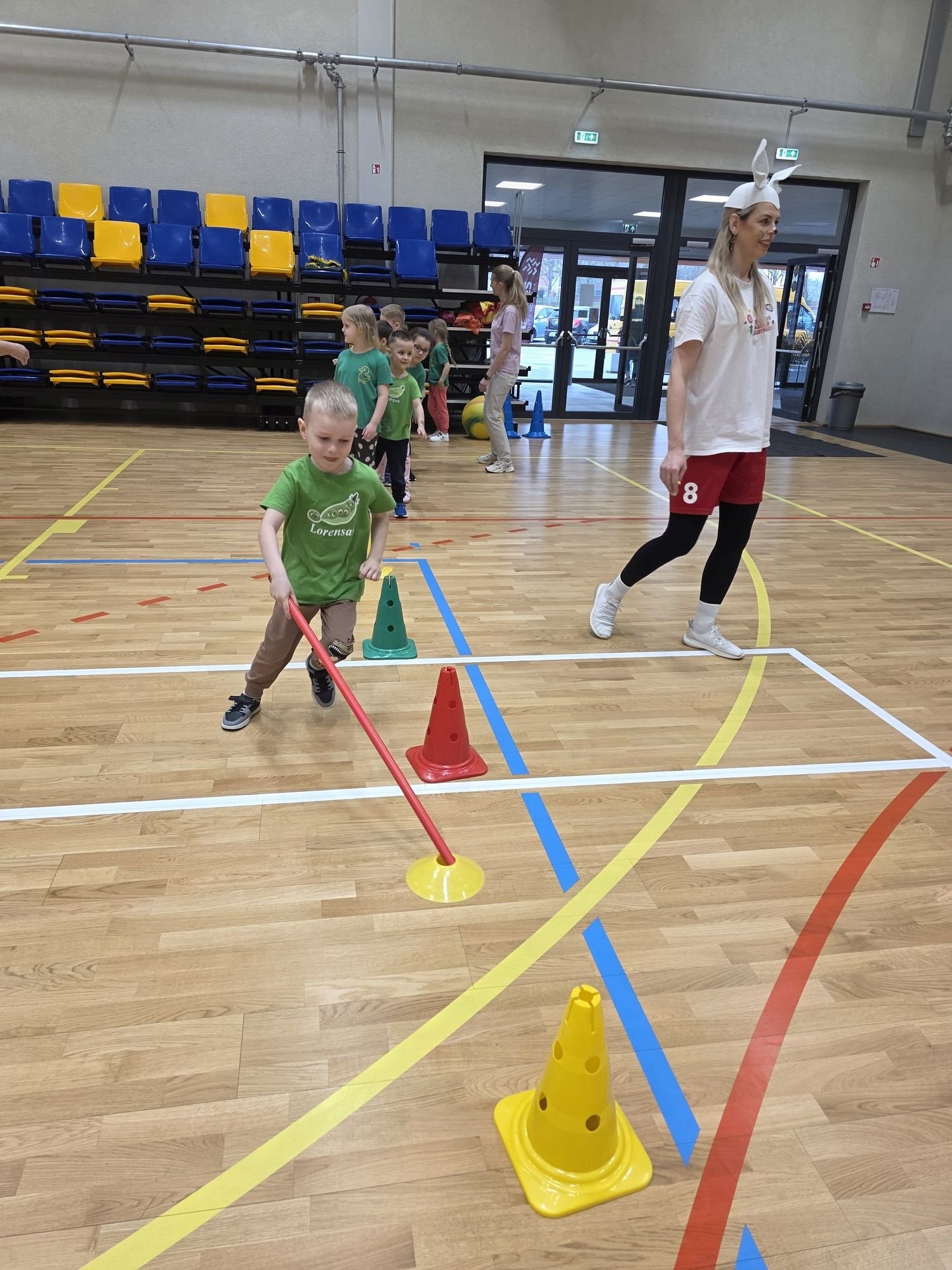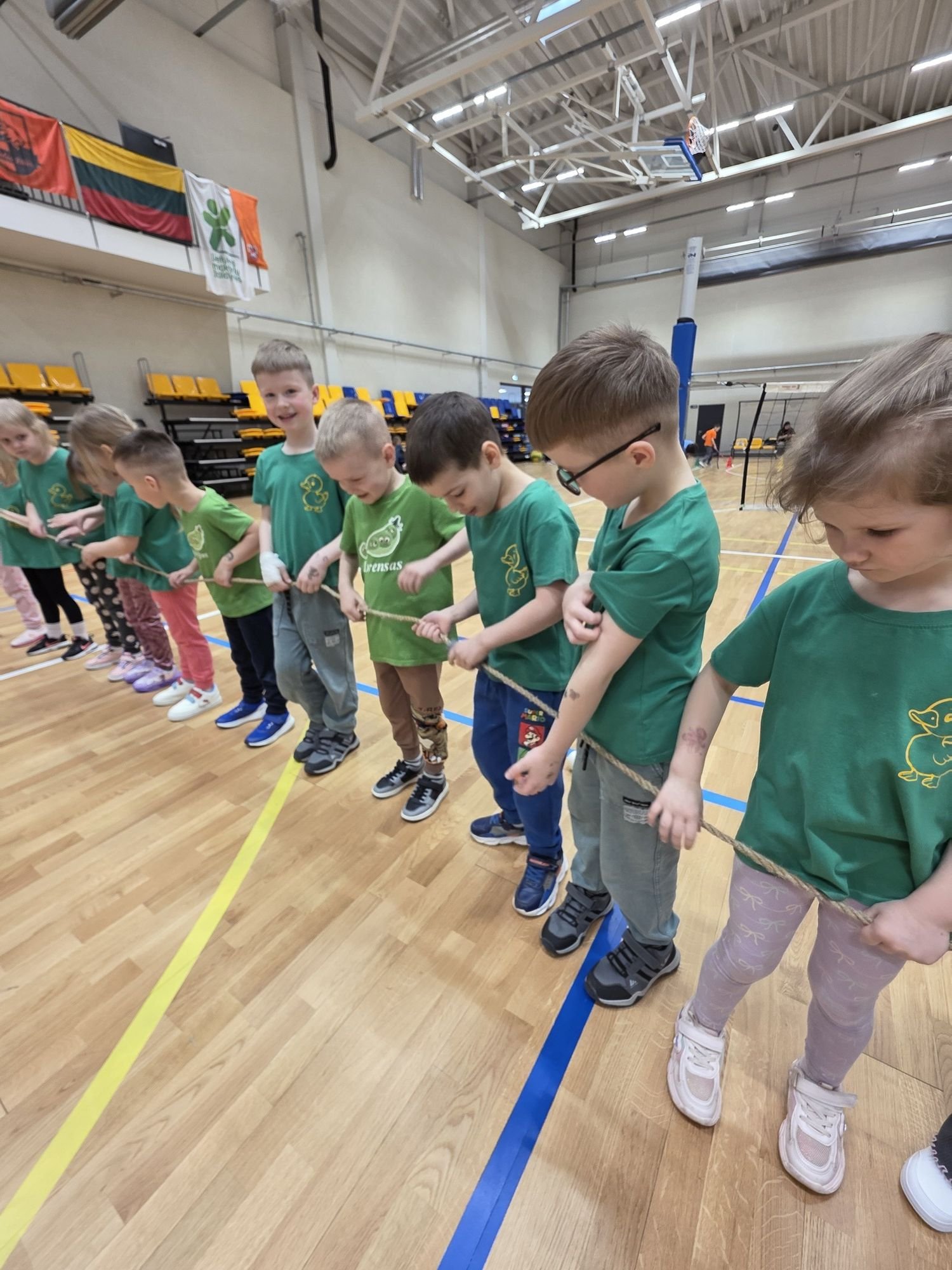 Po mankštos ugdytiniai dalyvavo net devyniose skirtingose sportinėse rungtyse. Užduotys buvo žaismingos, įdomios ir įvairios: vaikai piešė, mėtė minkštus kamuoliukus per tinklą, važiavo su riedžiais, vėrė ant virvės kartoninius ritinėlius, mušė kamuolį į vartus porolonine lazda, žaidė su spalvotu parašiutu, lindo tuneliu, dėliojo figūrėles ir atliko kitas aktyvias užduotis.