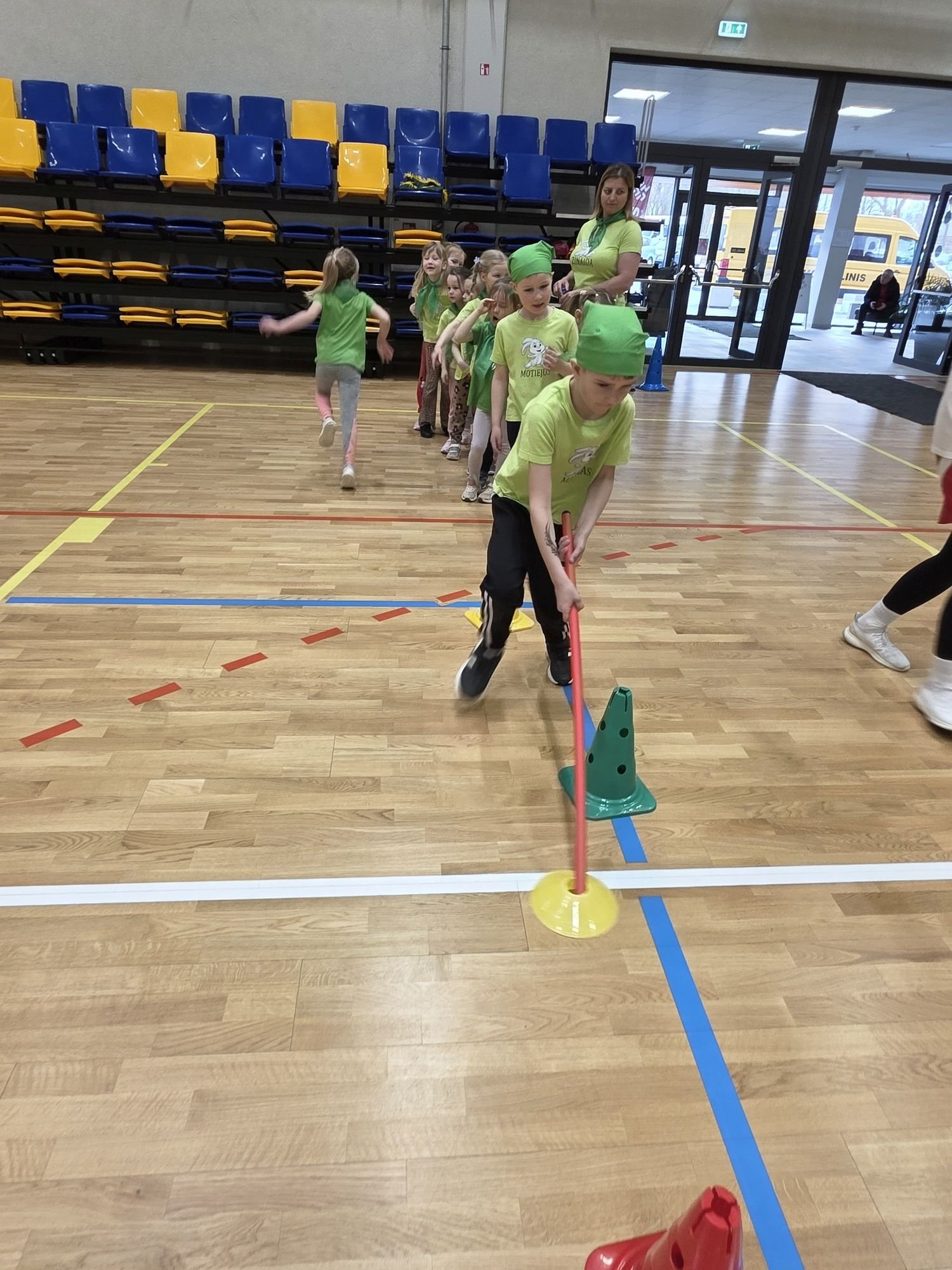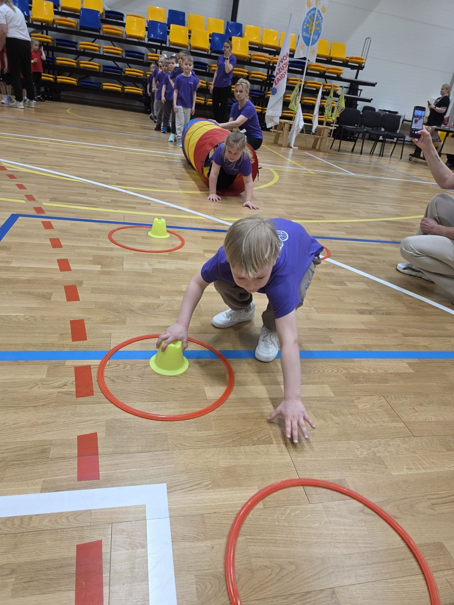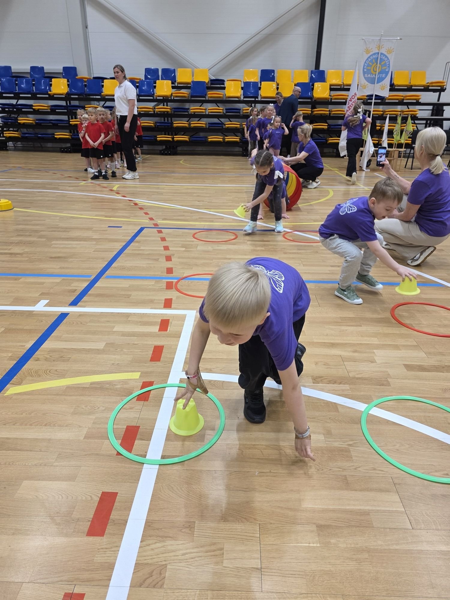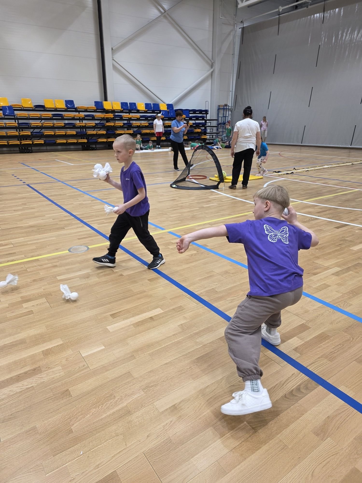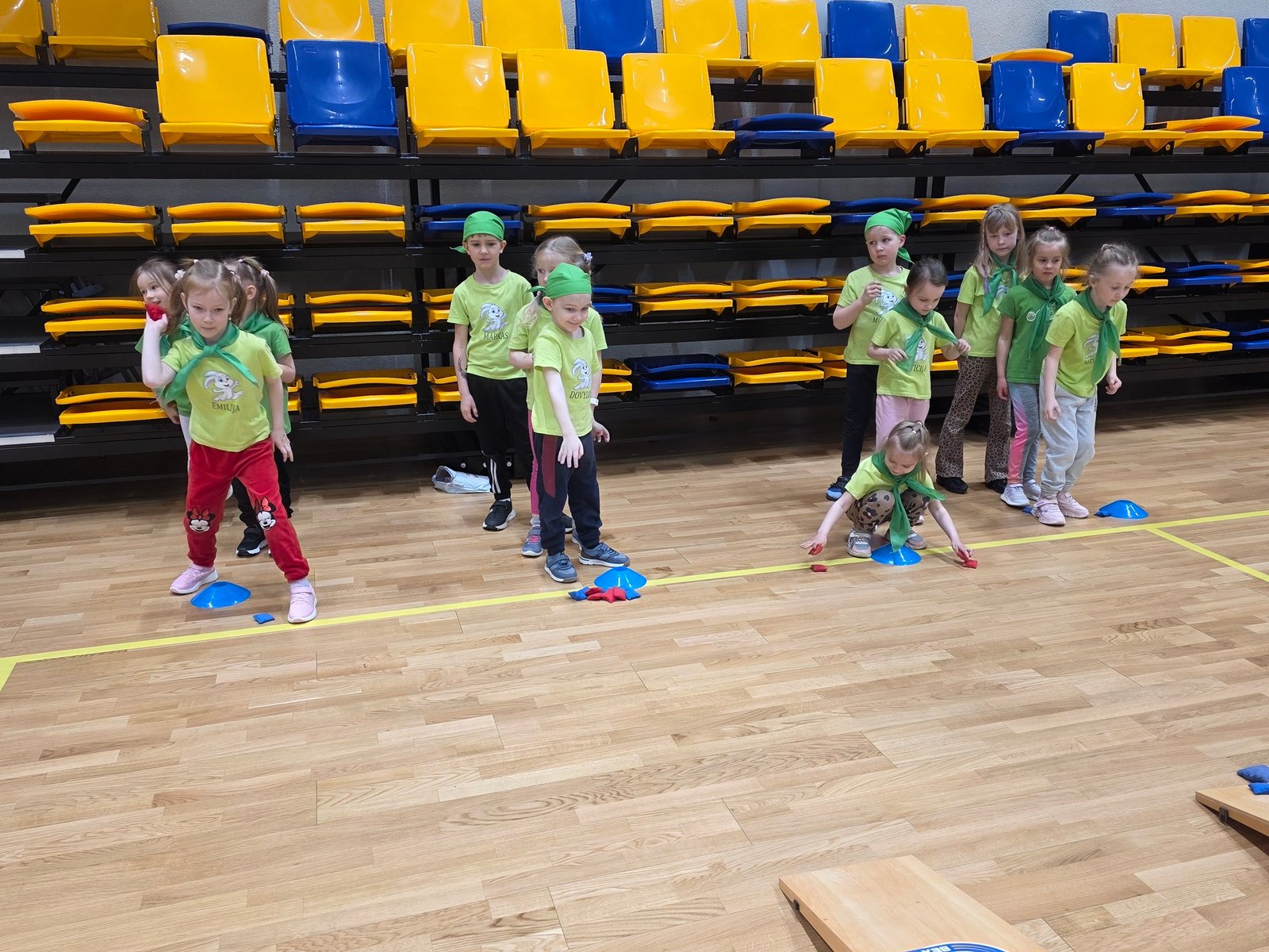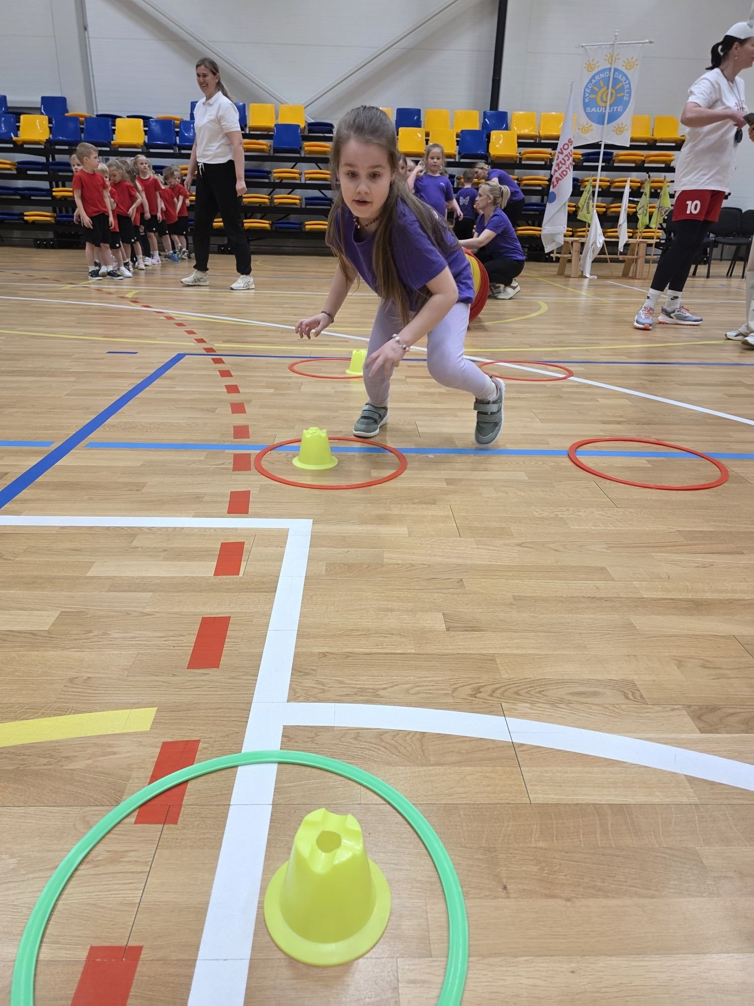 Po mankštos ugdytiniai dalyvavo net devyniose skirtingose sportinėse rungtyse. Užduotys buvo žaismingos, įdomios ir įvairios: vaikai piešė, mėtė minkštus kamuoliukus per tinklą, važiavo su riedžiais, vėrė ant virvės kartoninius ritinėlius, mušė kamuolį į vartus porolonine lazda, žaidė su spalvotu parašiutu, lindo tuneliu, dėliojo figūrėles ir atliko kitas aktyvias užduotis.