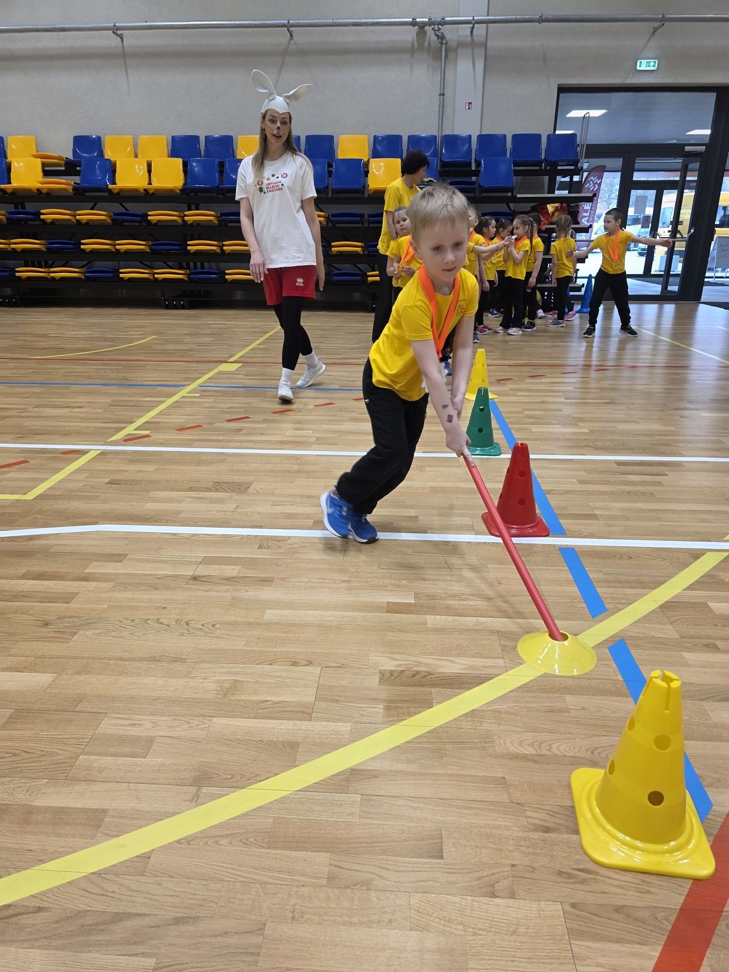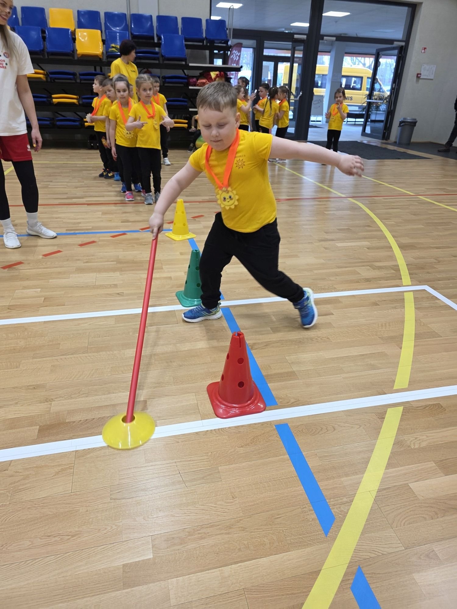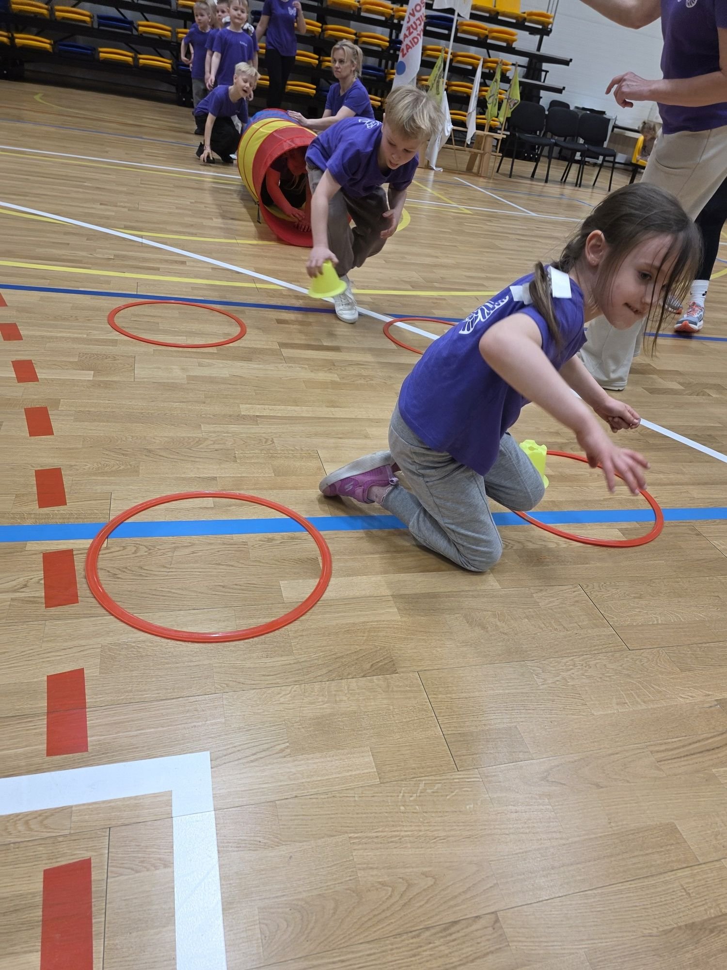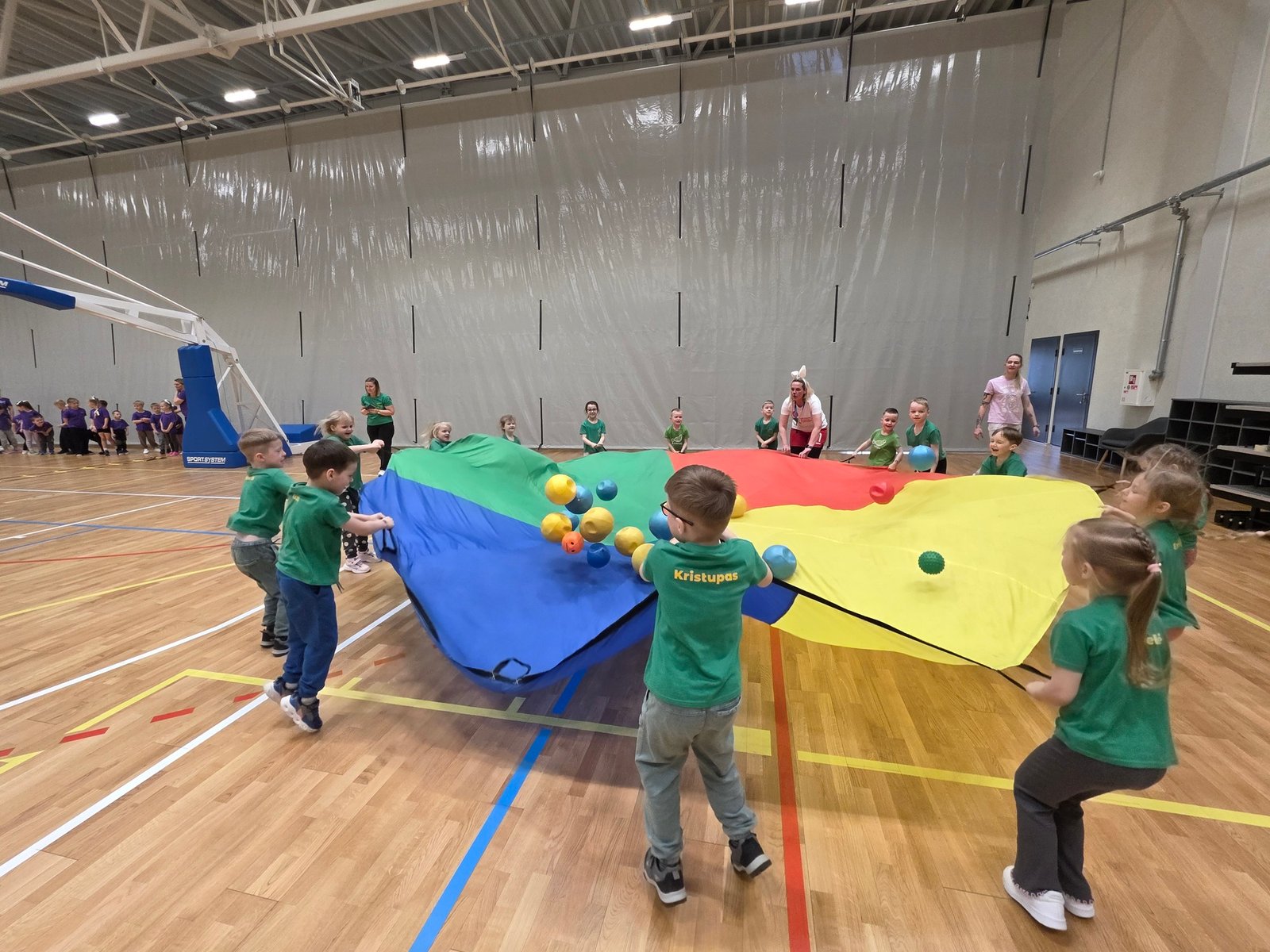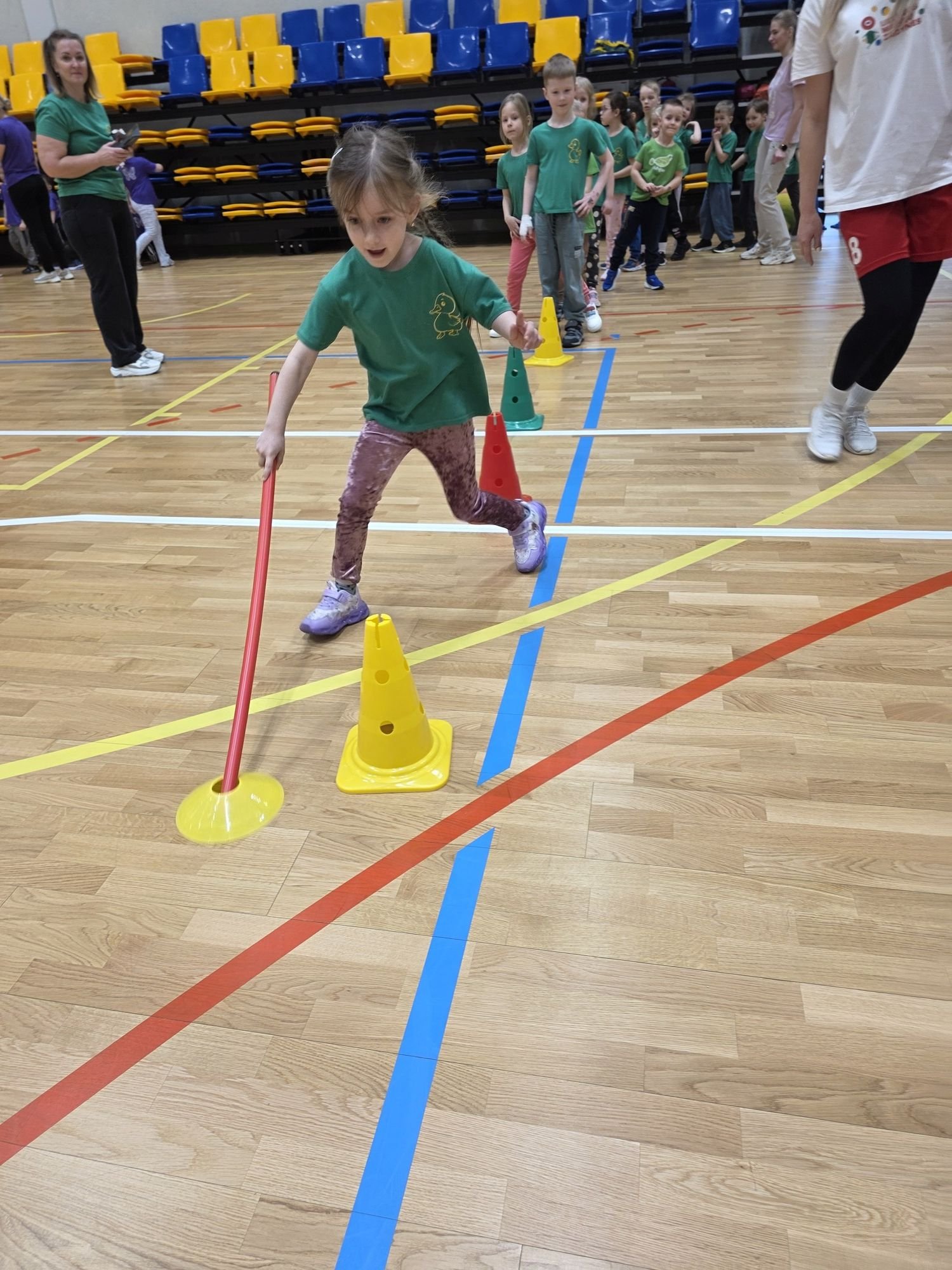 Po mankštos ugdytiniai dalyvavo net devyniose skirtingose sportinėse rungtyse. Užduotys buvo žaismingos, įdomios ir įvairios: vaikai piešė, mėtė minkštus kamuoliukus per tinklą, važiavo su riedžiais, vėrė ant virvės kartoninius ritinėlius, mušė kamuolį į vartus porolonine lazda, žaidė su spalvotu parašiutu, lindo tuneliu, dėliojo figūrėles ir atliko kitas aktyvias užduotis.