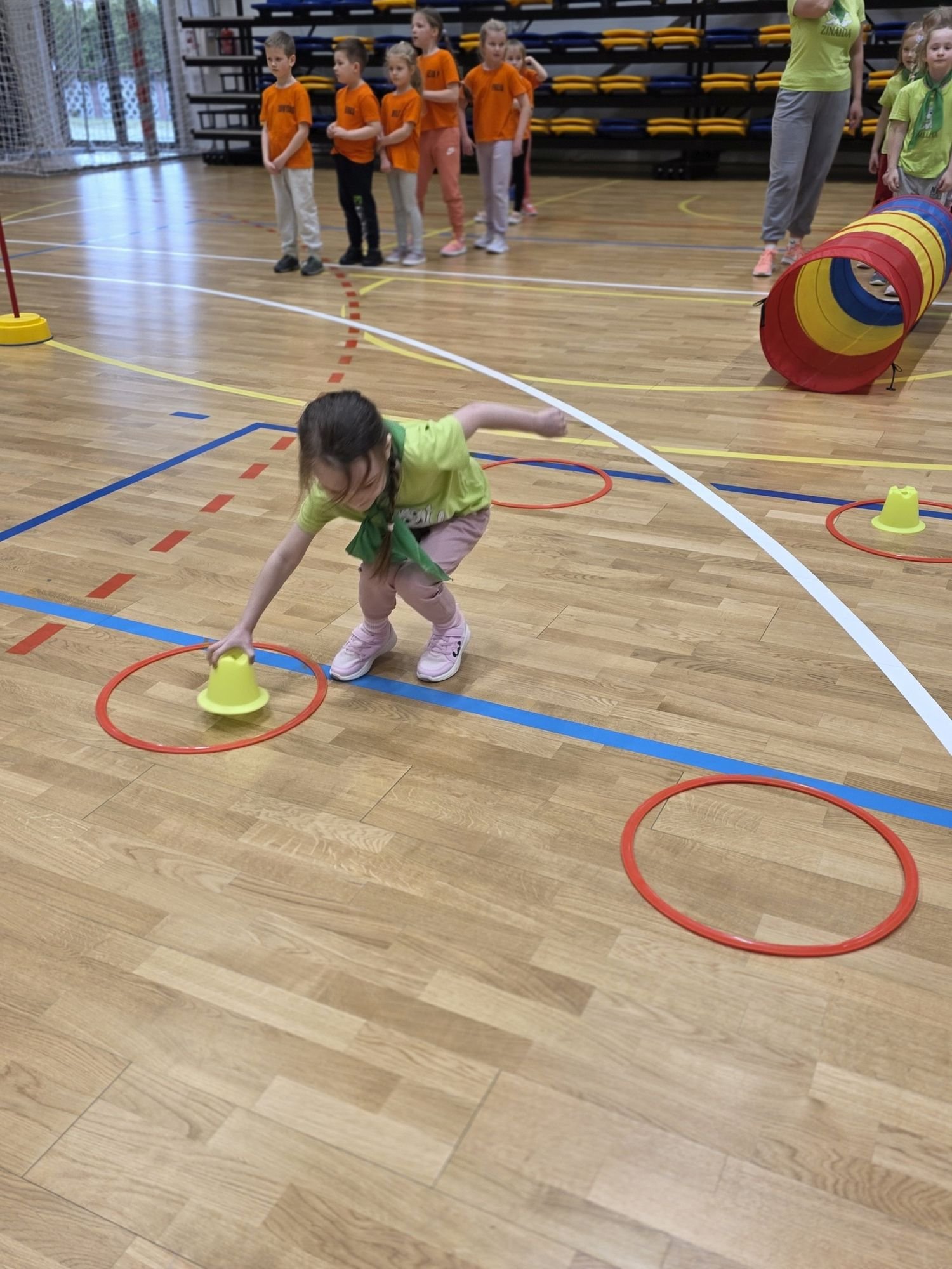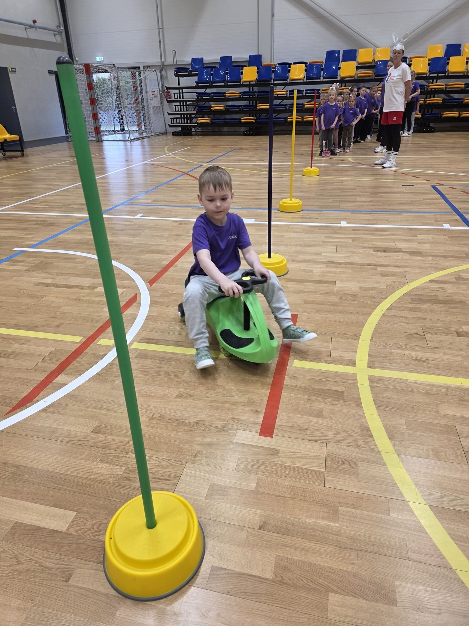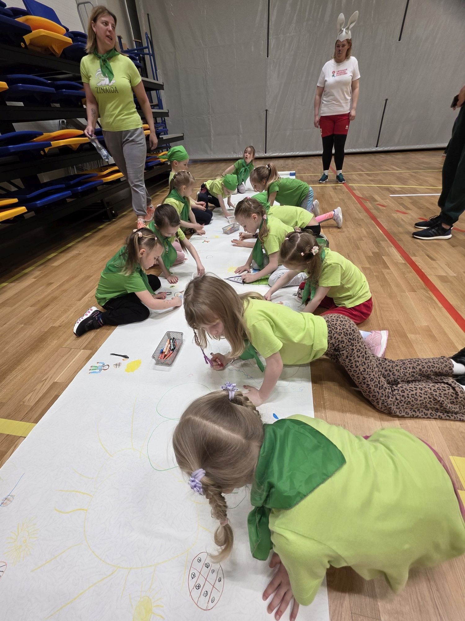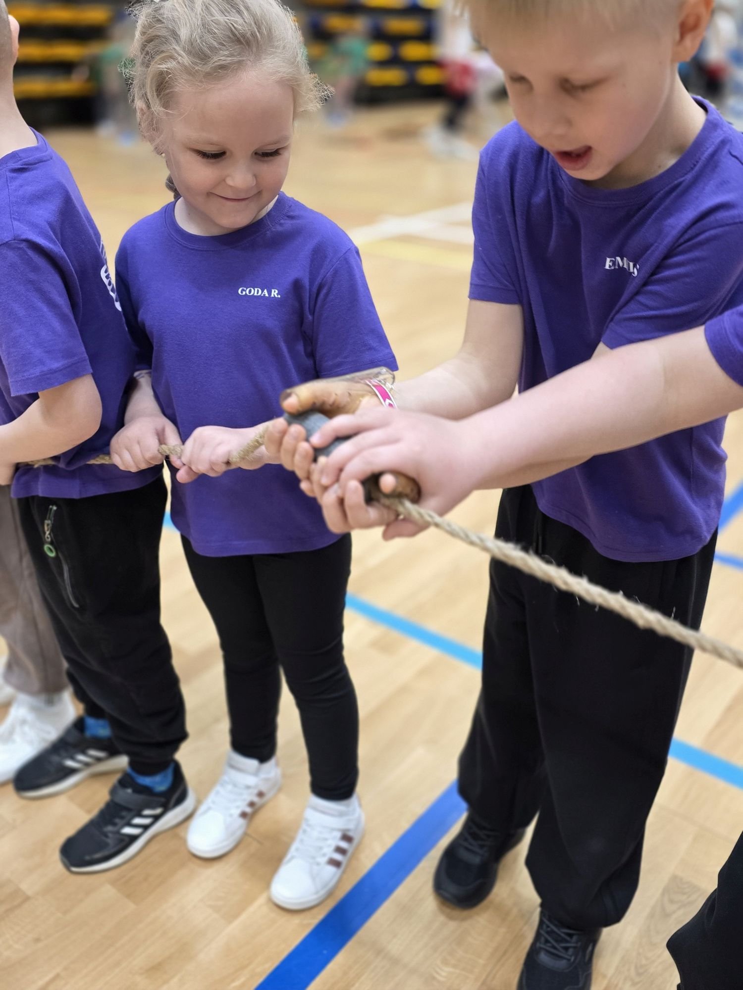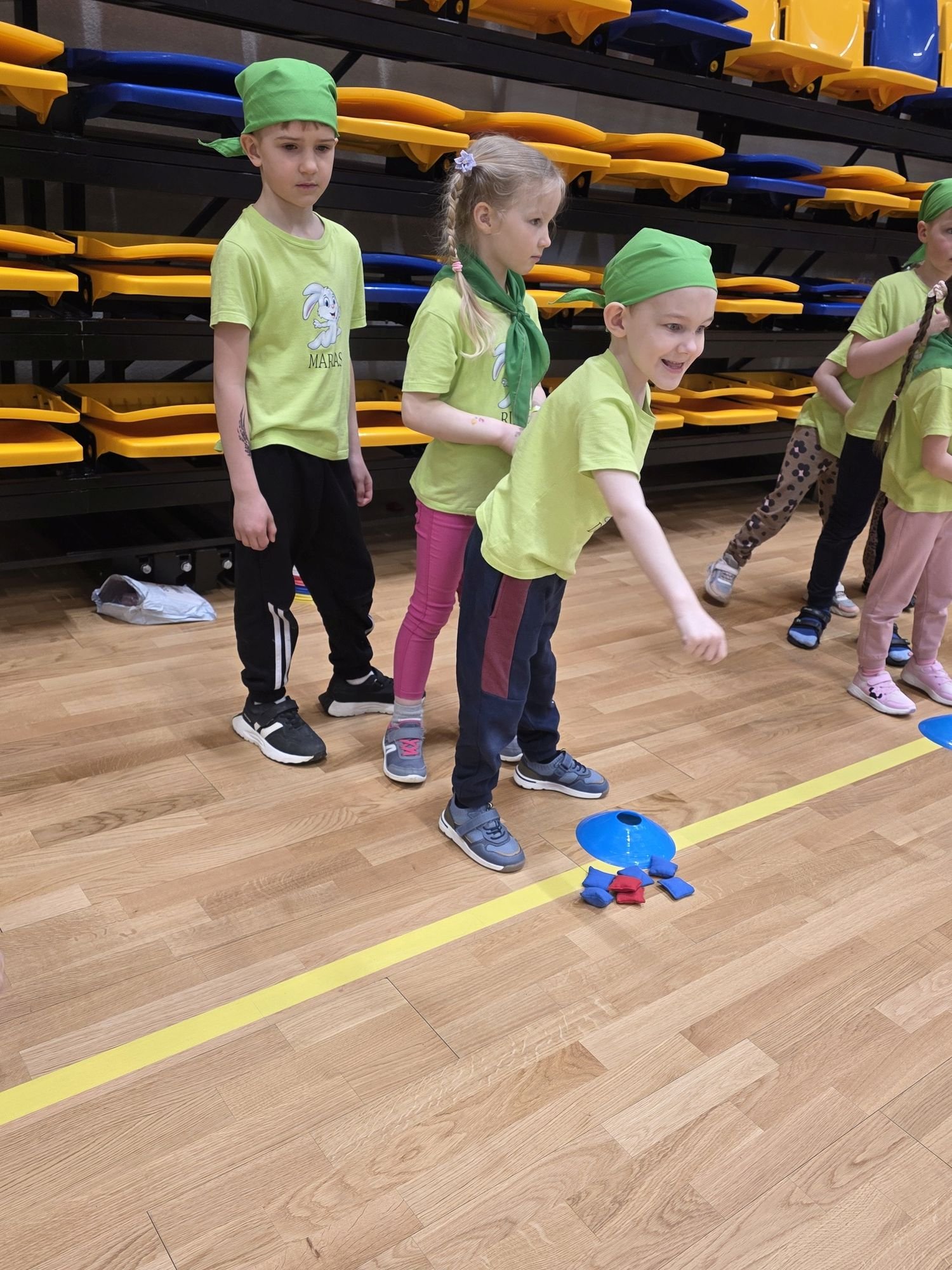 Po mankštos ugdytiniai dalyvavo net devyniose skirtingose sportinėse rungtyse. Užduotys buvo žaismingos, įdomios ir įvairios: vaikai piešė, mėtė minkštus kamuoliukus per tinklą, važiavo su riedžiais, vėrė ant virvės kartoninius ritinėlius, mušė kamuolį į vartus porolonine lazda, žaidė su spalvotu parašiutu, lindo tuneliu, dėliojo figūrėles ir atliko kitas aktyvias užduotis.