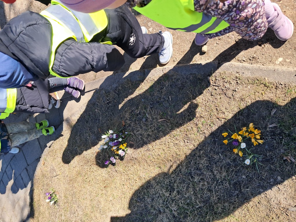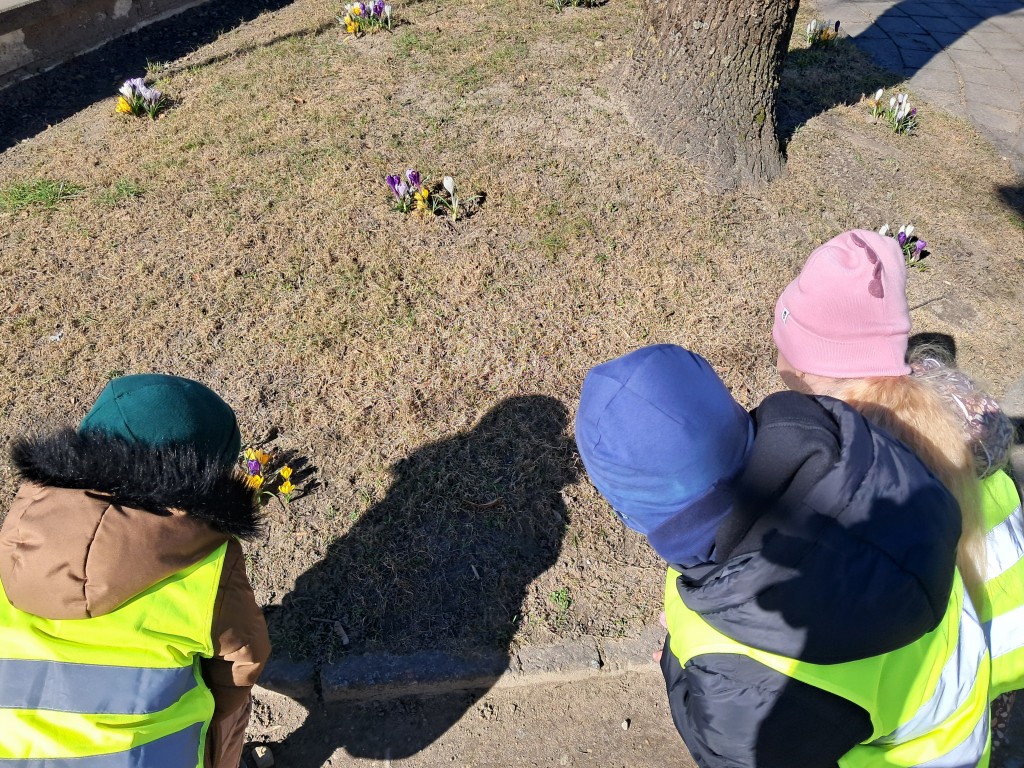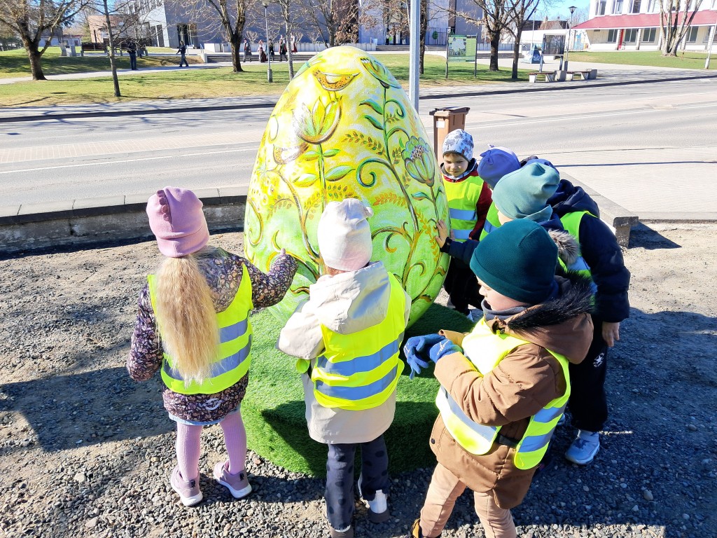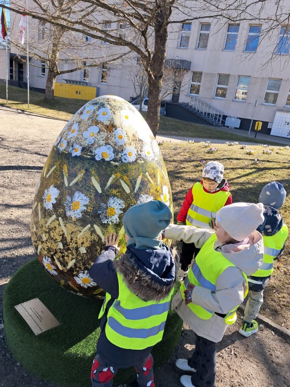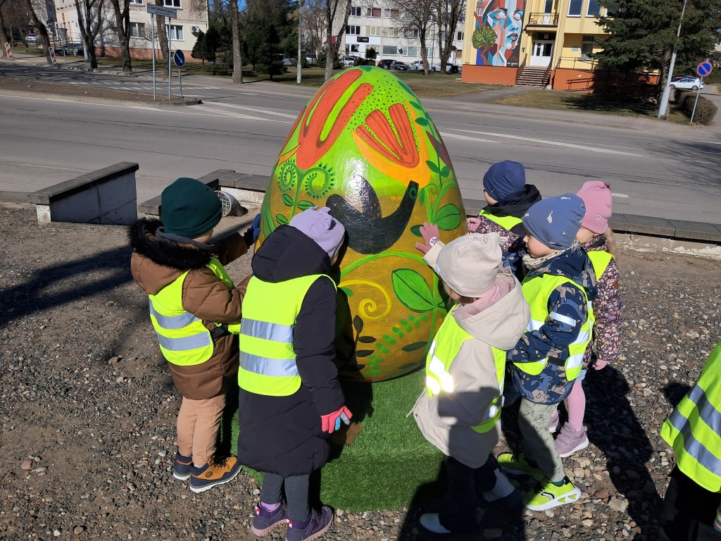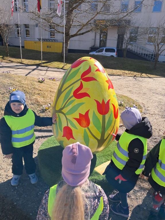 Lauke maloniai švietė pavasario saulė, kuri kvietė pasigėrėti ne tik atbundančia gamta. Vaikučiai grožėjosi, tyrinėjo Šilalės kultūros centro įėjimą bei priešais esantį parkelį puošiančius Velykinius margučius, pražydusias nuostabaus grožio pavasario gėlytes „Krokus“.