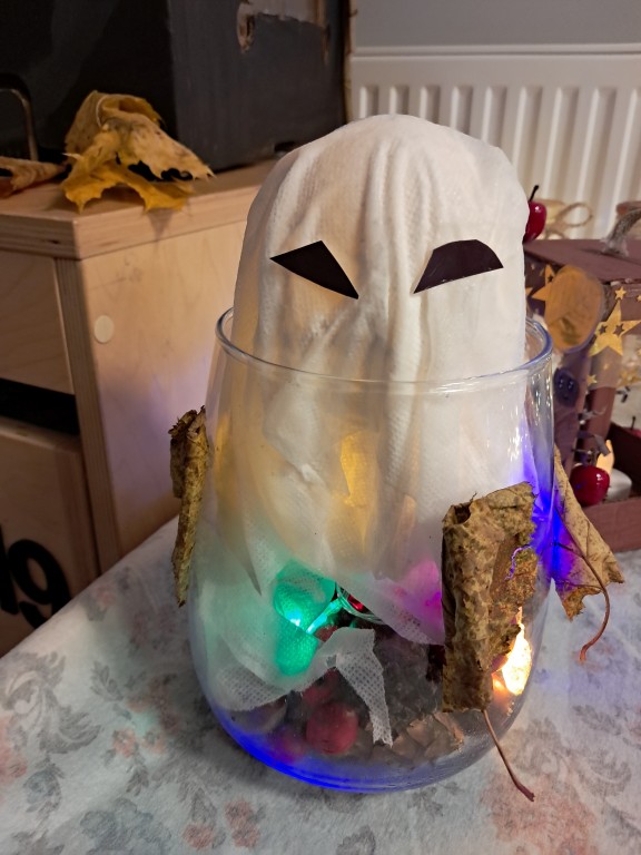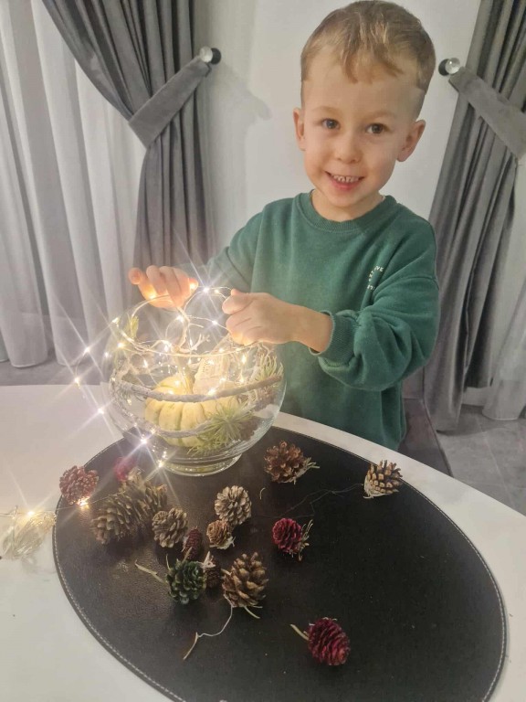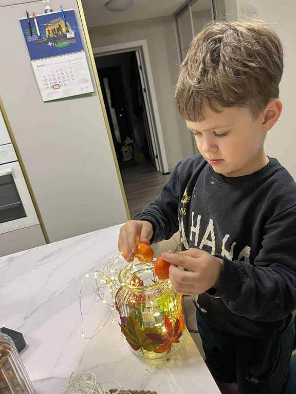 Artėjant Vėlinėms – bendrystės, padėkos, prisiminimų ir gerumo laikotarpiui, grupės pedagogės, ugdytiniai ir jų tėveliai grupėje, namuose kūrė dekoracijas/darbelius iš gamtinių medžiagų, rudens gėrybių žvakių šviesos motyvais. Grupėje, iš jaukioje bendrystėje sukurtų nuostabių kūrinių, buvo surengta parodėlė. Visa „Žirniukų“ grupės bendruomenė grožėjosi „Šviečiančiais gamtos paveikslais“, dalijosi kūrybos metu patirtais įspūdžiais. O spindinčios švieselės visus kvietė prisiminti artėjančias Vėlines, jų prasmę.