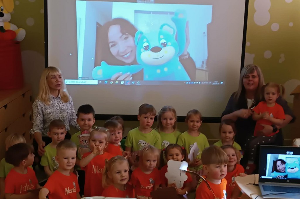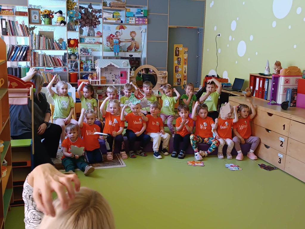 Rašytoja pristatė savo knygą apie Tapatulį – jautrų personažą, mažą meškiuką, su ilgomis rankytėmis, kurių pagalba galima paliesti visus emocijų taškus. Kartu su autore vaikai mokėsi atpažinti emocijas, jas įvardyti ir suprasti, kad visi jausmai yra svarbūs ir reikalingi. Dar prieš šį ypatingą susitikimą vaikai pasinėrė į kūrybą – kūrė savo Tapatulius, tokius, kokius įsivaizduoja. Ant popieriaus gimė spalvingi, linksmi, ryškūs kūriniai. Kiekvienas Tapatulis buvo kitoks, tačiau visi pasakojo savo mažą istoriją – apie jausmus, patirtis ir vaikišką pasaulio suvokimą. Kūrybinė veikla tapo nuoširdžia vaikų padėka rašytojai, o atsidėkodami už įdomų susitikimą, vaikai padovanojo jai dar vieną gerą emociją – linksmai sušoko šokelį ir pradžiugino ją šypsenomis.