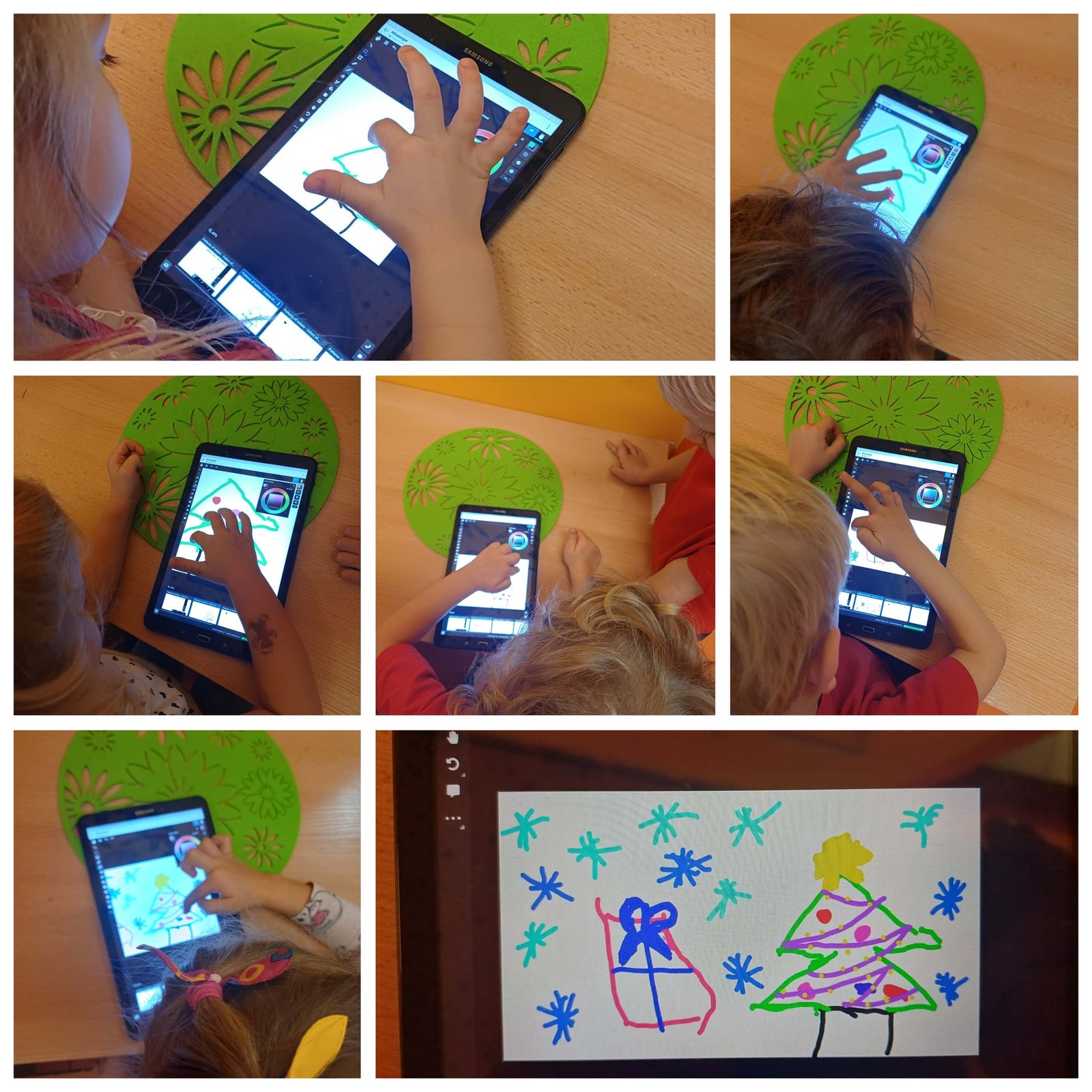 - gruodžio mėnesį gaminome rankų darbo popierių iš antrinių žaliavų. Vaikai plėšė laikraščius, mirkė, maišė, formavo masę ir gamino geometrines figūras. Pagamintą popierių svėrė, dekoravo gamtinėmis medžiagomis, fiksavo duomenis lentelėse. Taip jie sužinojo apie perdirbimo naudą. Taip pat naudodami programėlę „Colorillo“ kūrė bendrą piešinį „Žiema“;