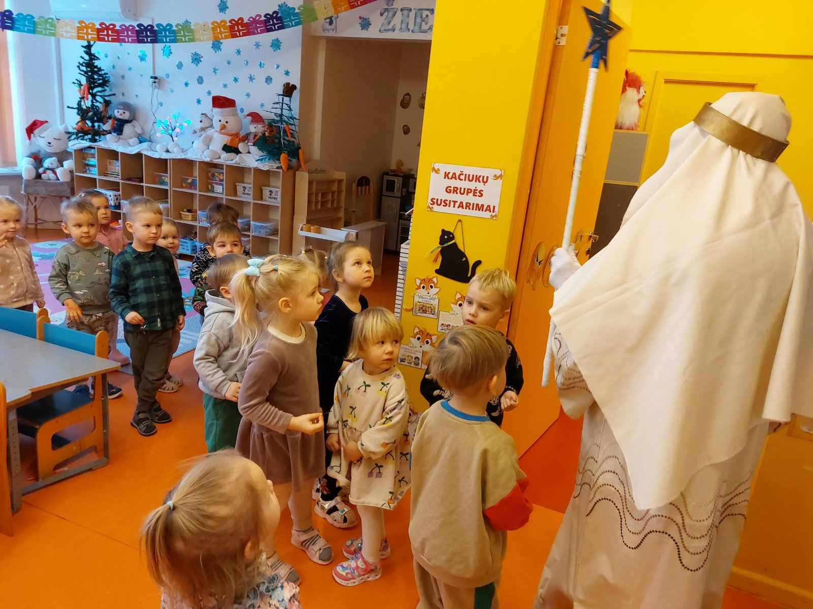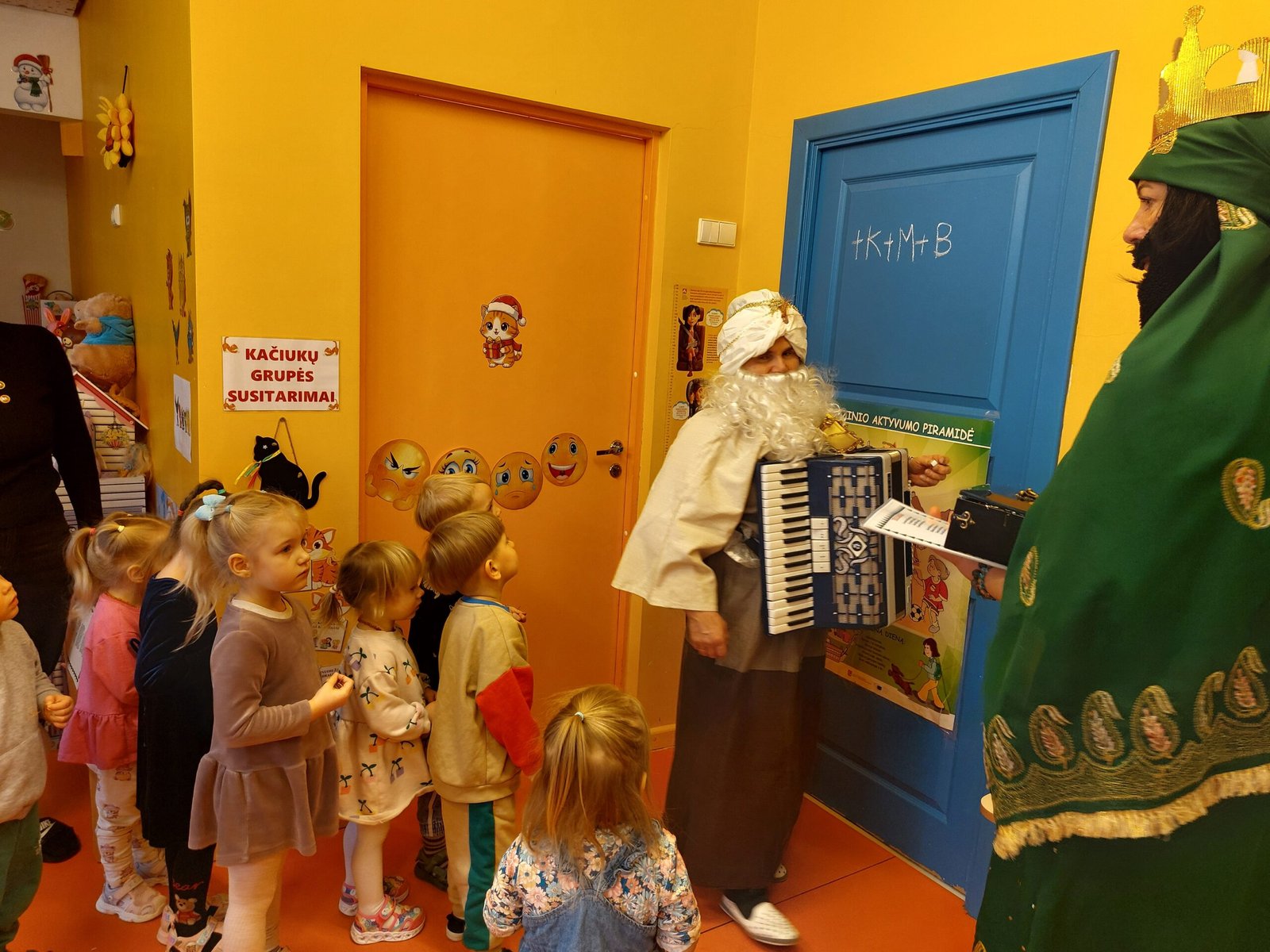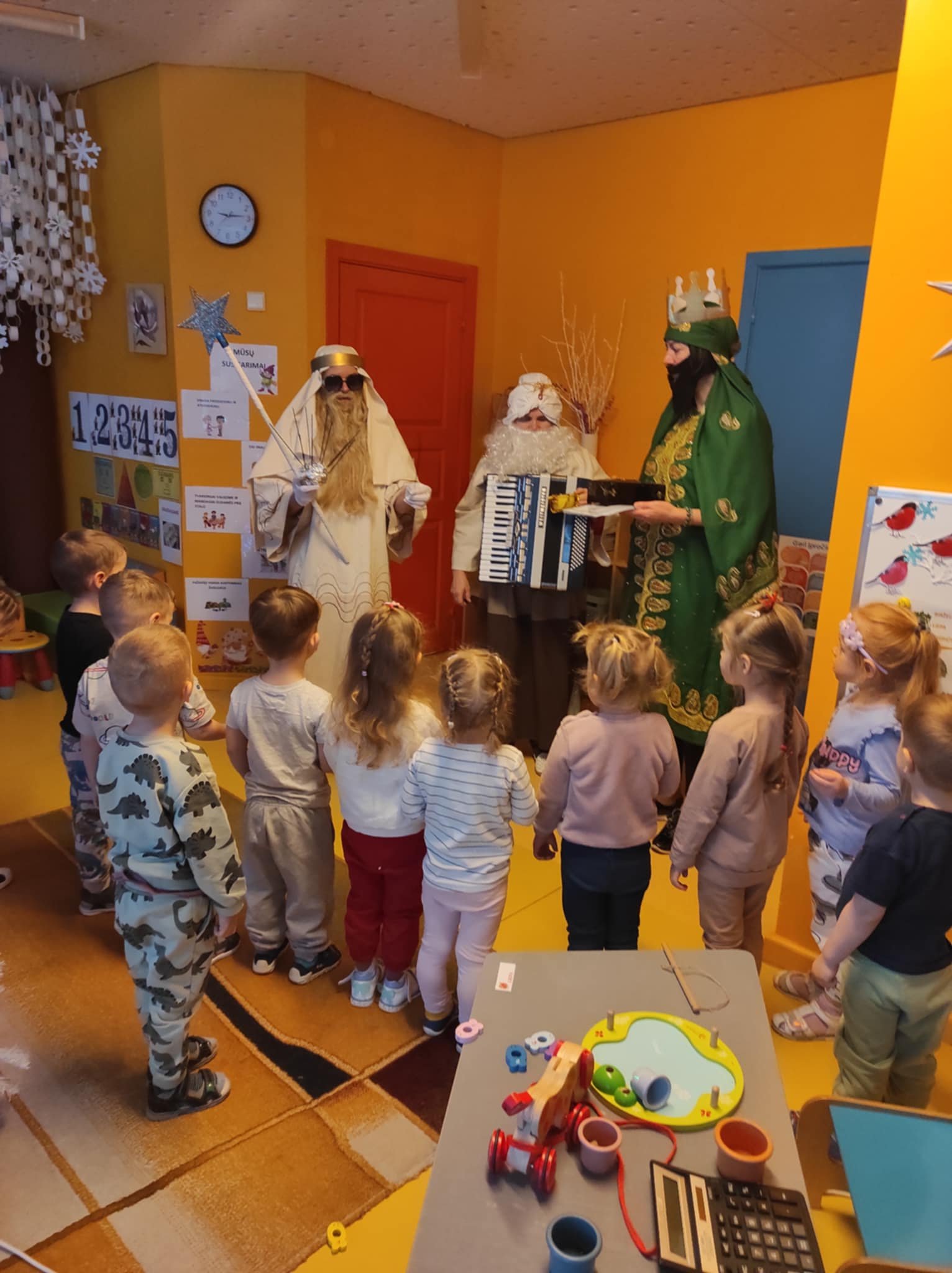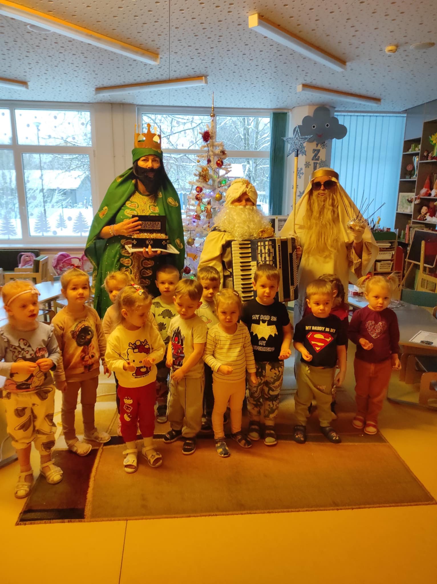 Trijų Karalių apsilankymas vaikų grupėse vyko jaukiai ir žaismingai, kurio metu vaikučiai prasmingai kartu su mokytojomis ir trimis karaliais užbaigė kalėdinį laikotarpį.