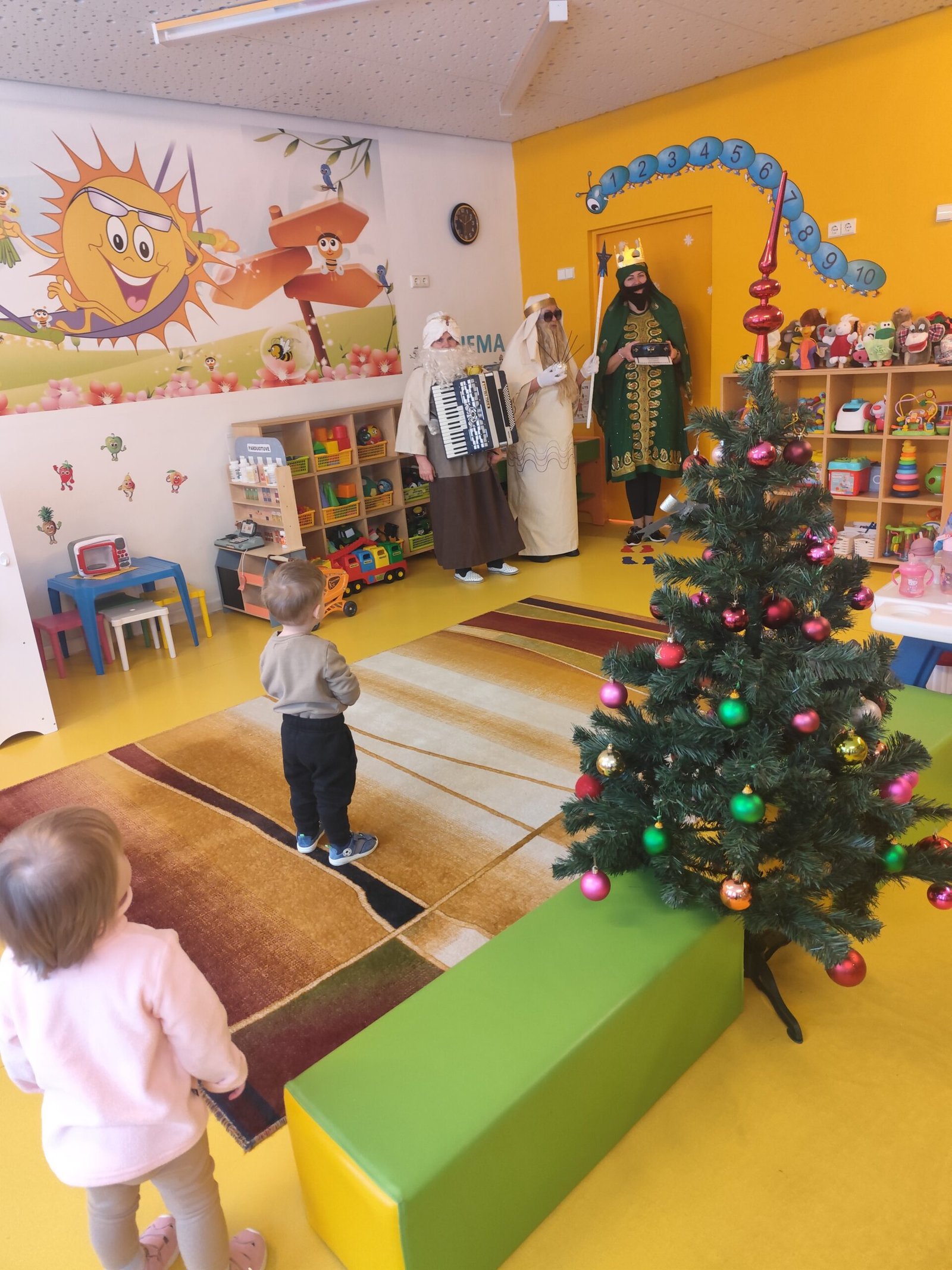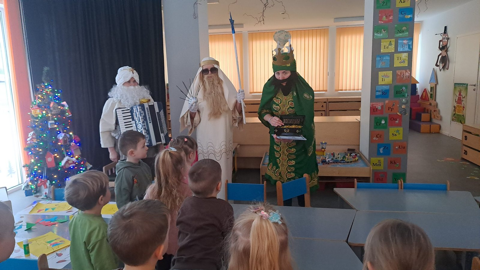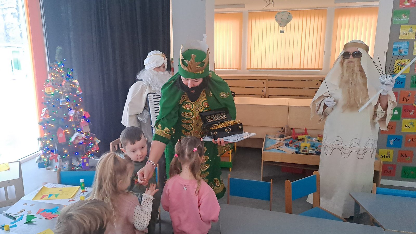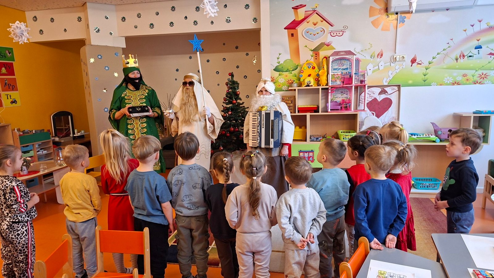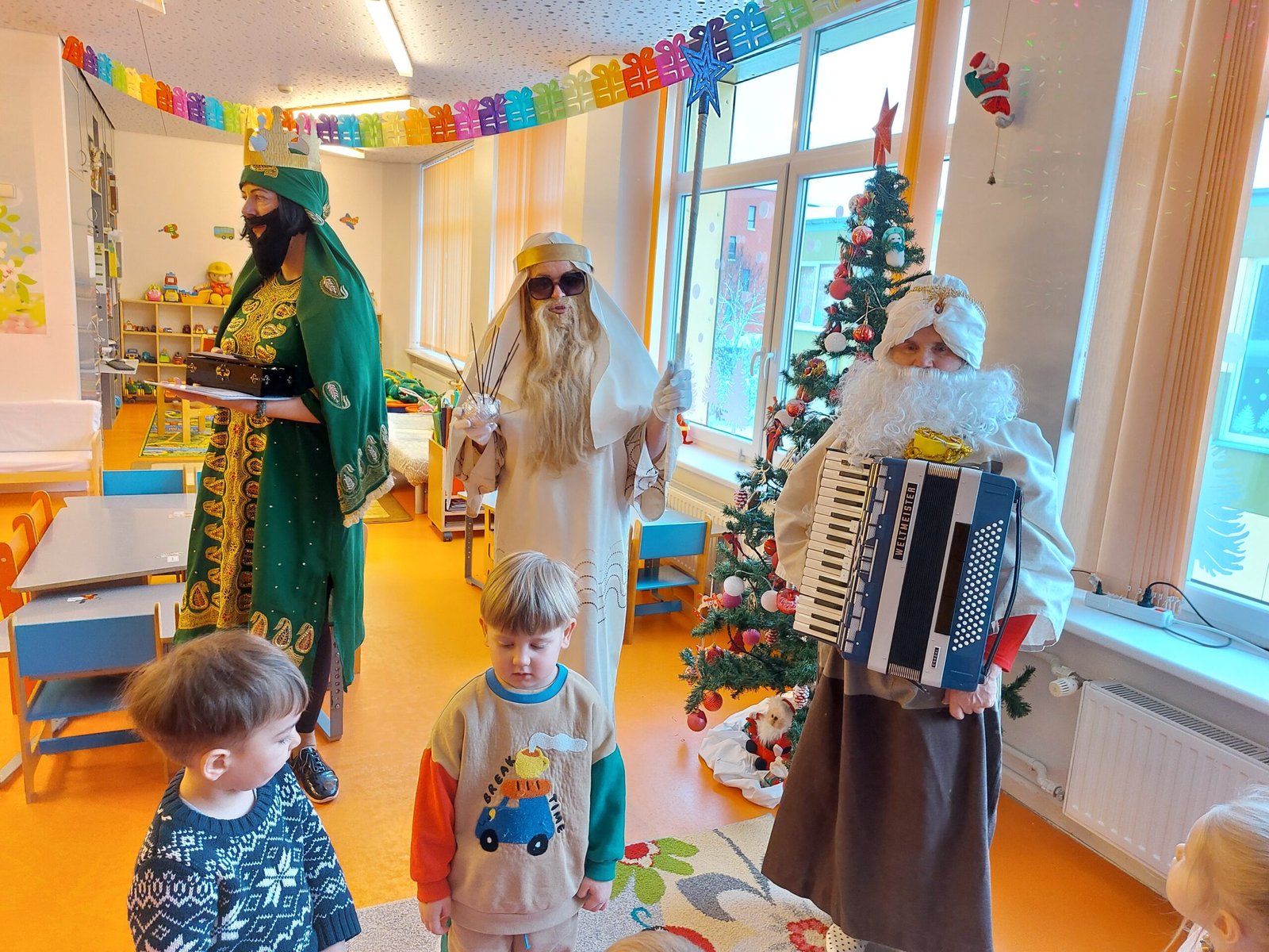 Trijų Karalių apsilankymas vaikų grupėse vyko jaukiai ir žaismingai, kurio metu vaikučiai prasmingai kartu su mokytojomis ir trimis karaliais užbaigė kalėdinį laikotarpį.